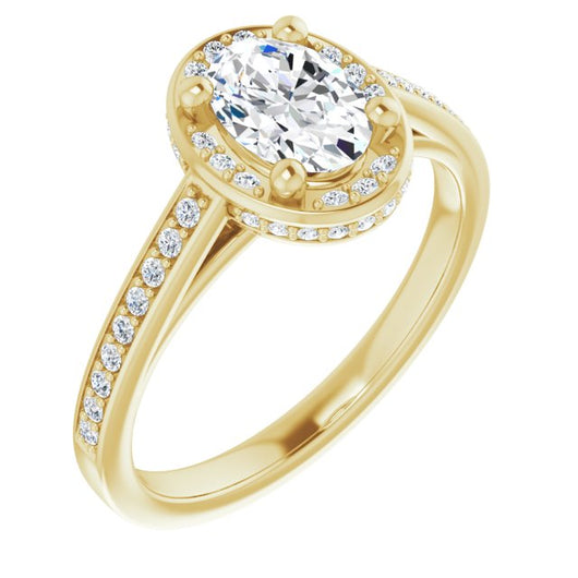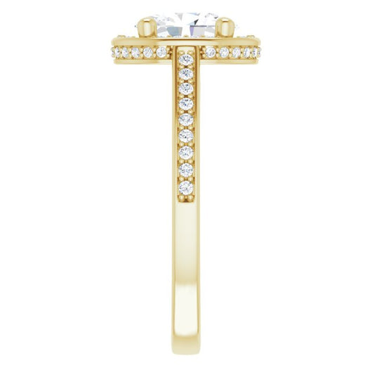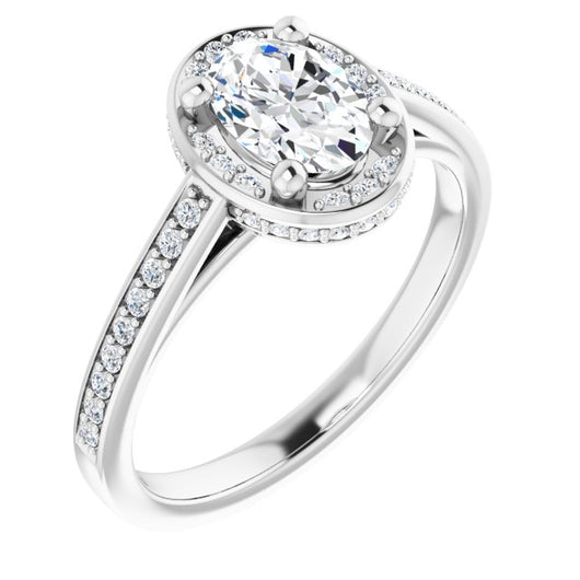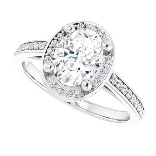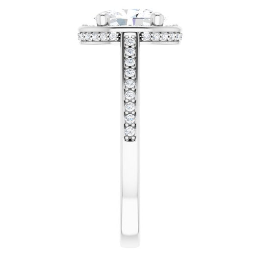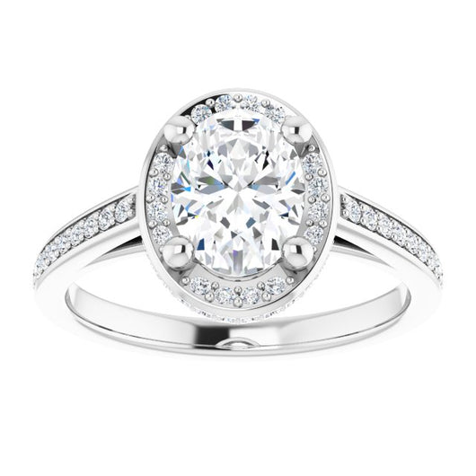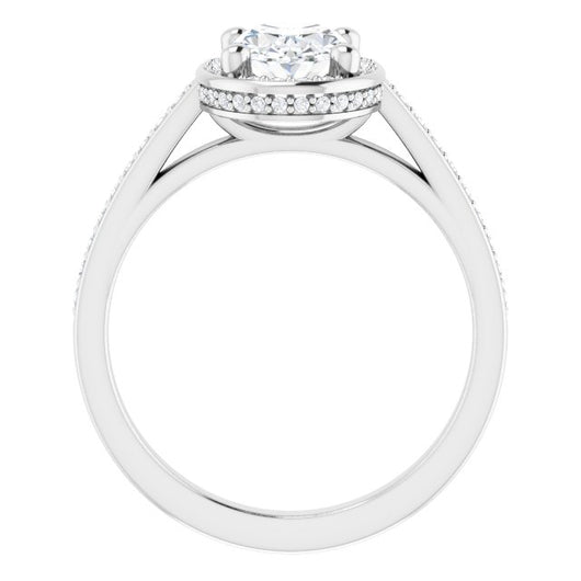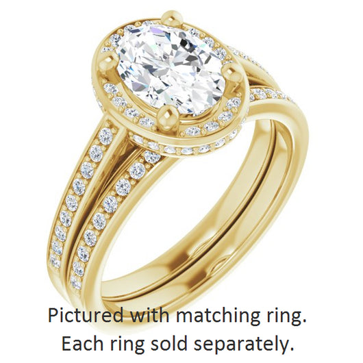 Center Stone Shape: Oval Cut (as pictured). See this customizable ring set with other available center stone shapes here: customize setting.