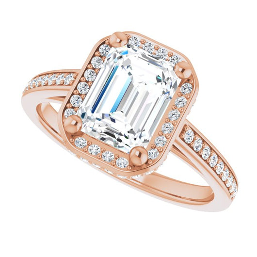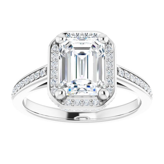 * Your ring’s total carat weight (TCW), band width, weight in grams, and/or number and size of accent, pavé, or halo stones will vary up or down depending on your choice of customizable center stone shape and size, precious metal type, and finger ring size via the drop-down options provided.