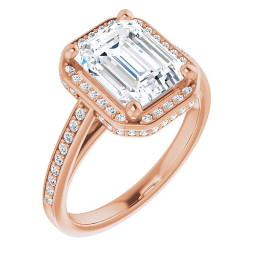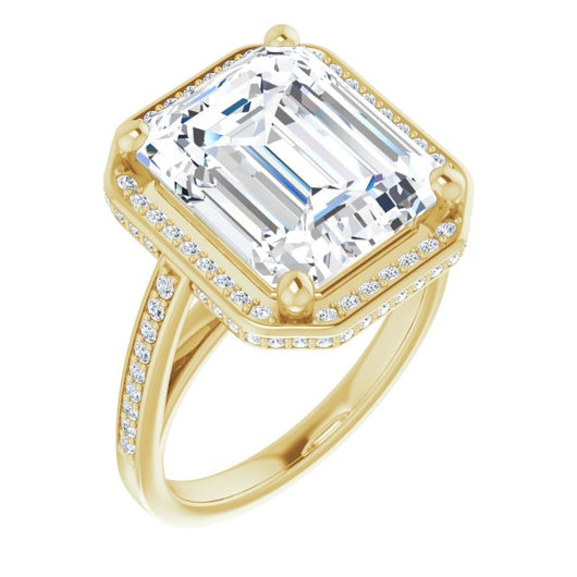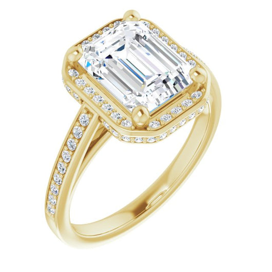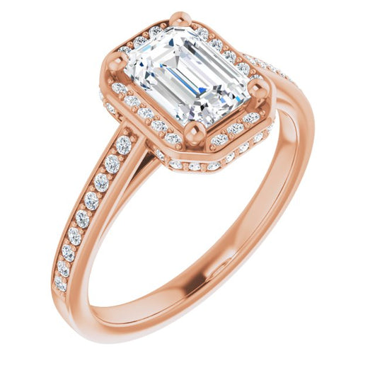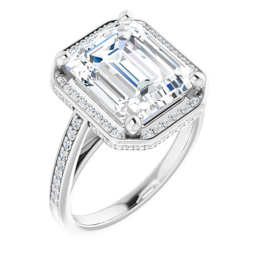 Center Stone Shape: Radiant Cut (as pictured with Emerald Cut). See this customizable ring set with other available center stone shapes here: customize setting.