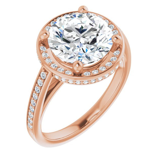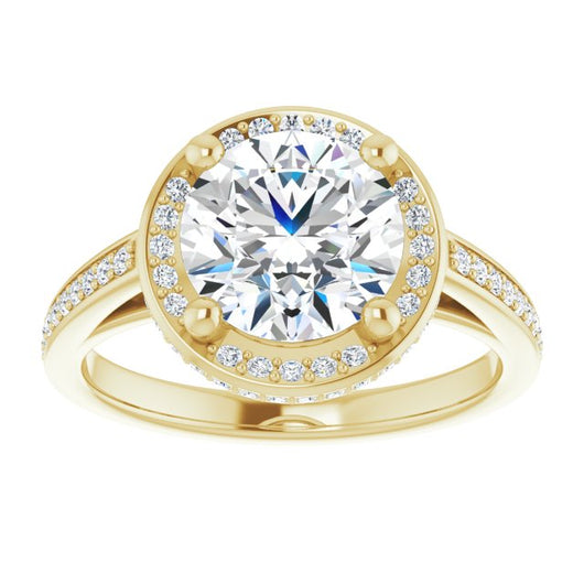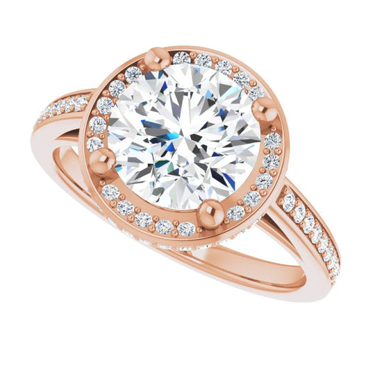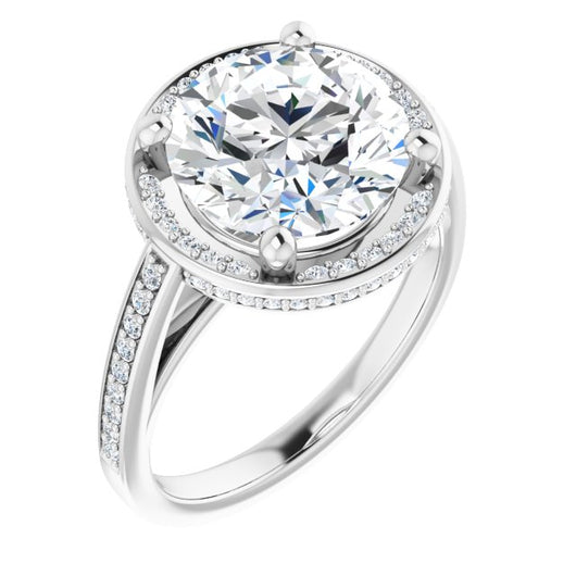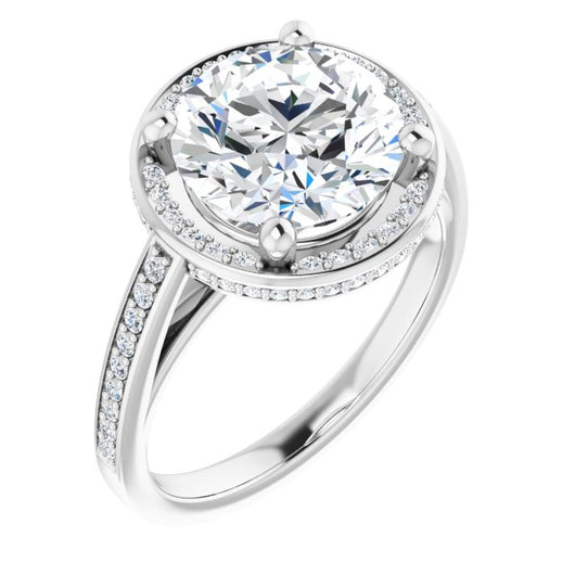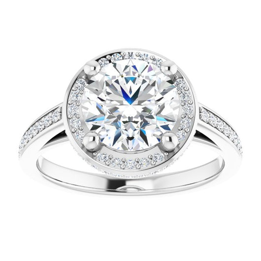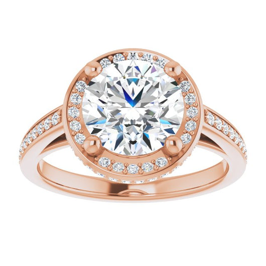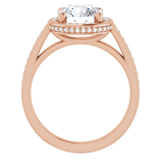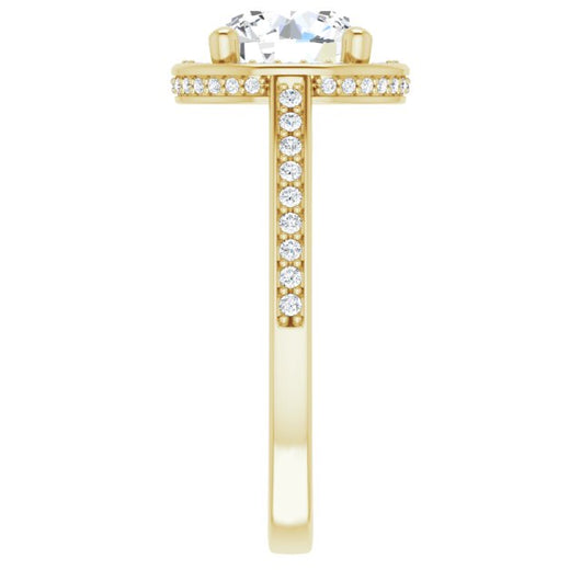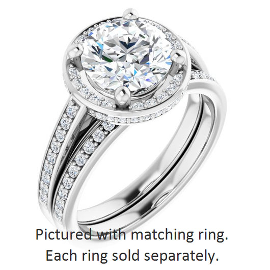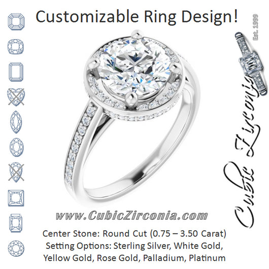 * Your ring’s total carat weight (TCW), band width, weight in grams, and/or number and size of accent, pavé, or halo stones will vary up or down depending on your choice of customizable center stone shape and size, precious metal type, and finger ring size via the drop-down options provided.