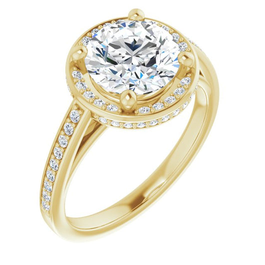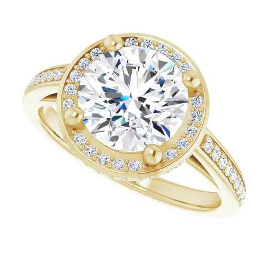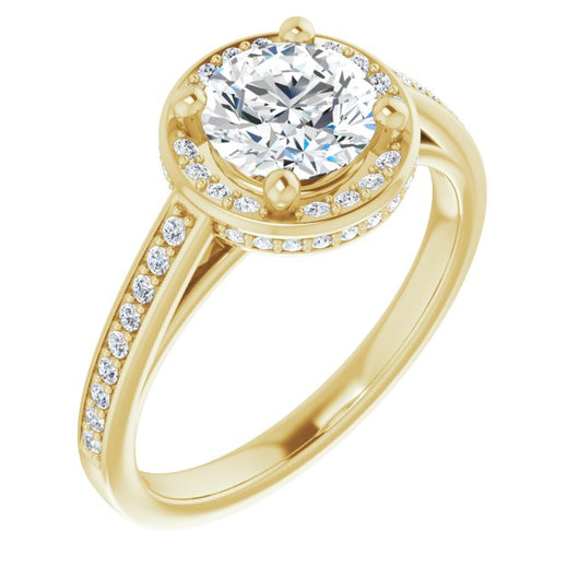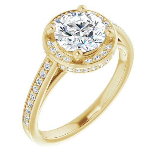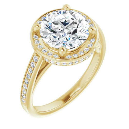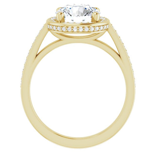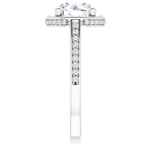 Center Stone Shape: Round Cut (as pictured). See this customizable ring set with other available center stone shapes here: customize setting.