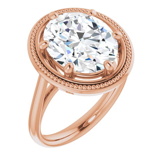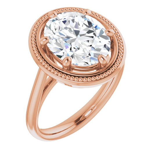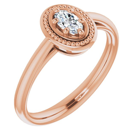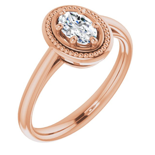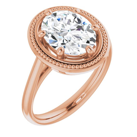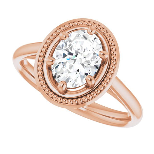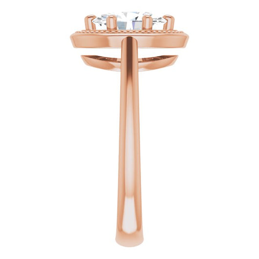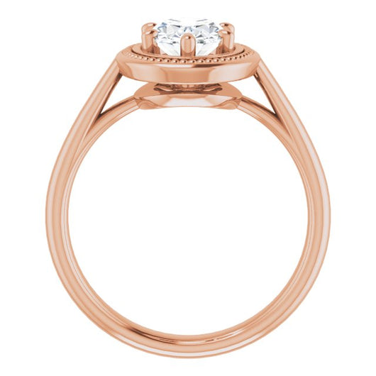 10K Rose Gold Customizable Oval Cut Solitaire with Metallic Drops Halo Lookalike