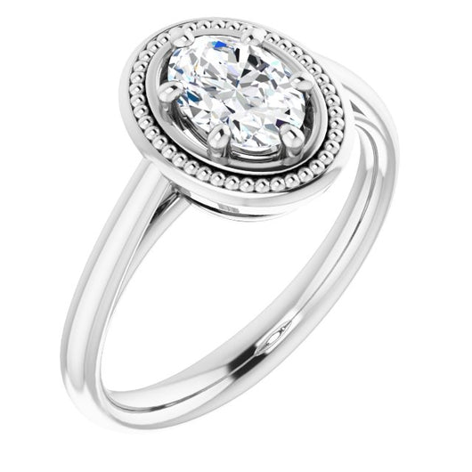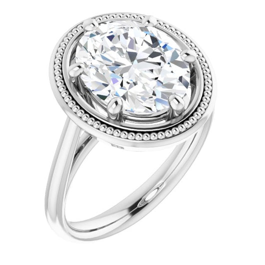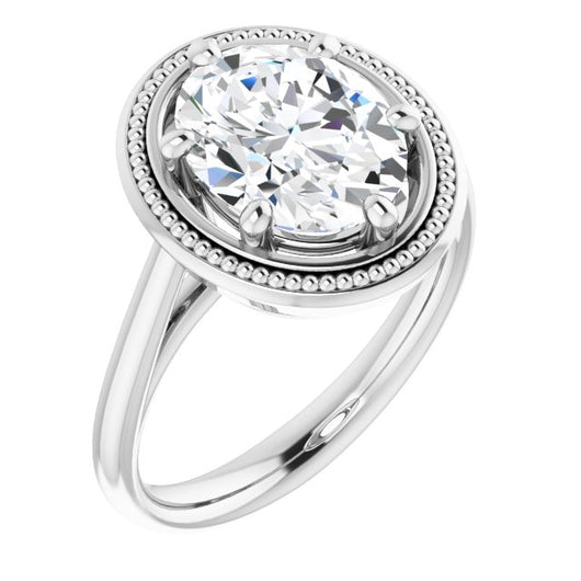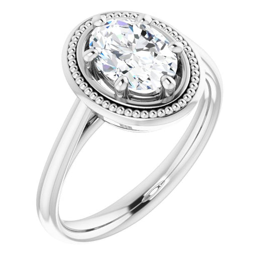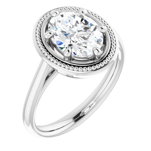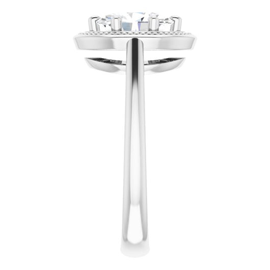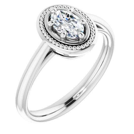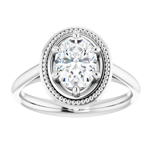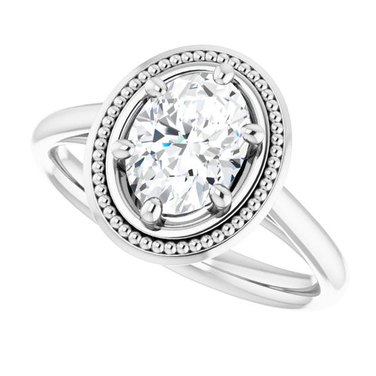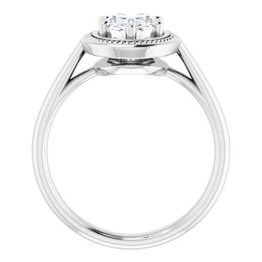 10K White Gold Customizable Oval Cut Solitaire with Metallic Drops Halo Lookalike