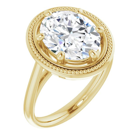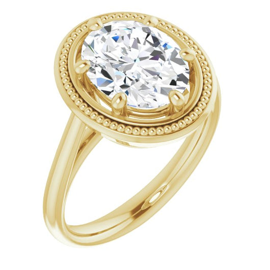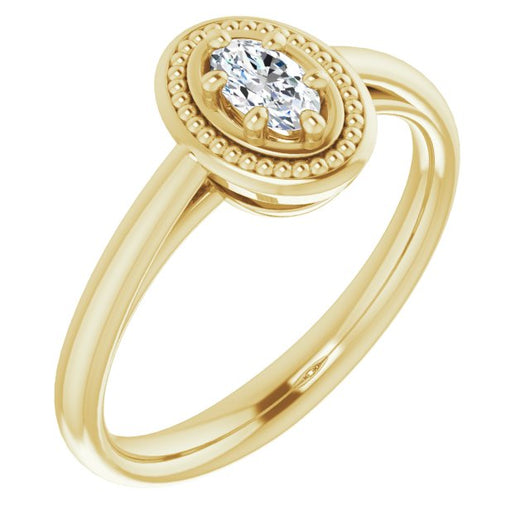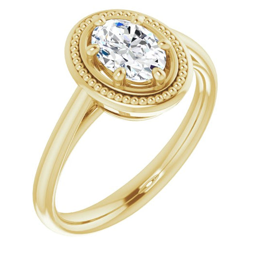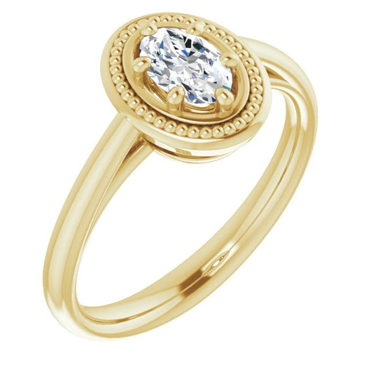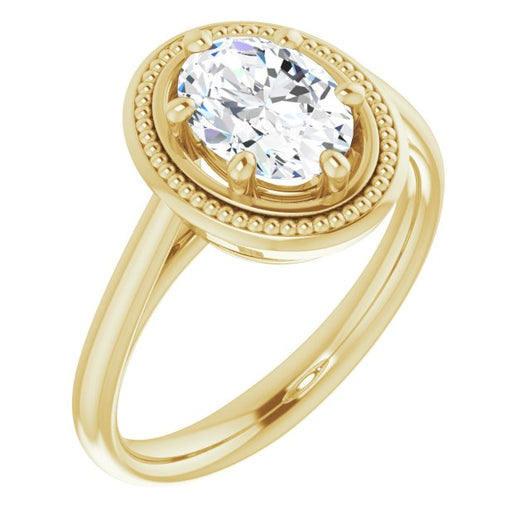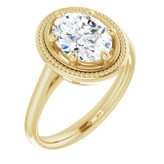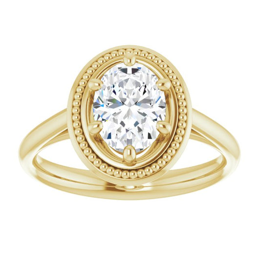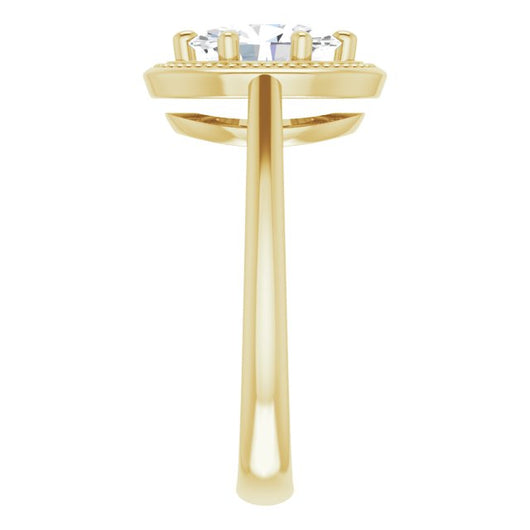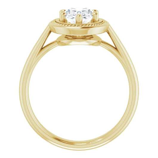 10K Yellow Gold Customizable Oval Cut Solitaire with Metallic Drops Halo Lookalike