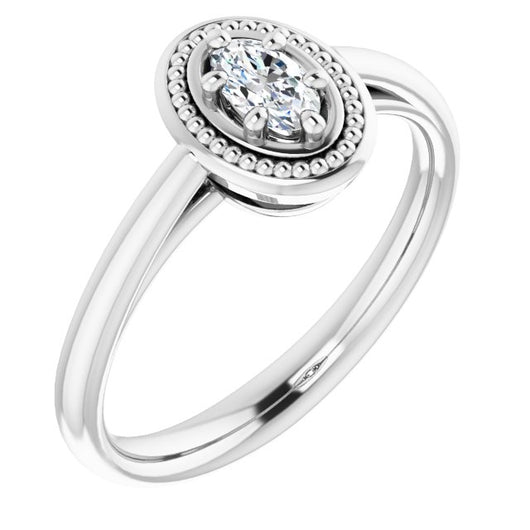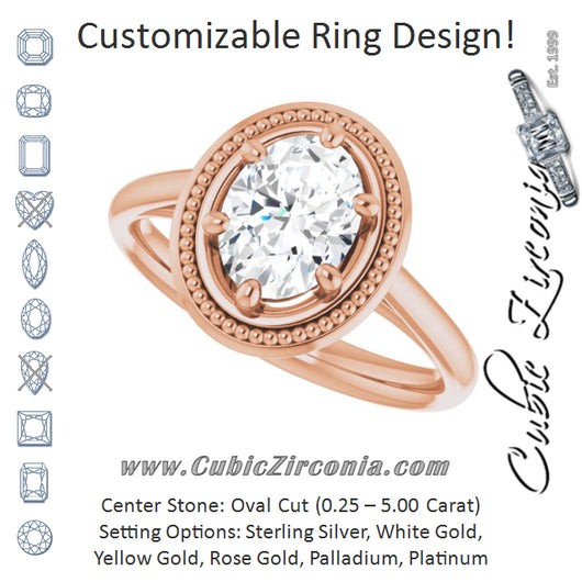 Cubic Zirconia Engagement Ring- The Eve (Customizable Oval Cut Solitaire with Metallic Drops Halo Lookalike)