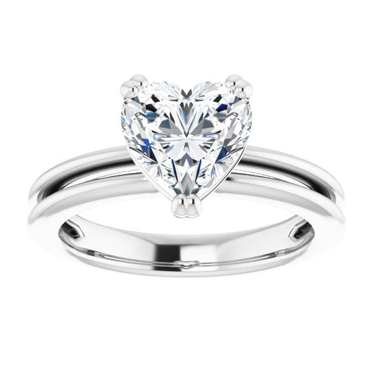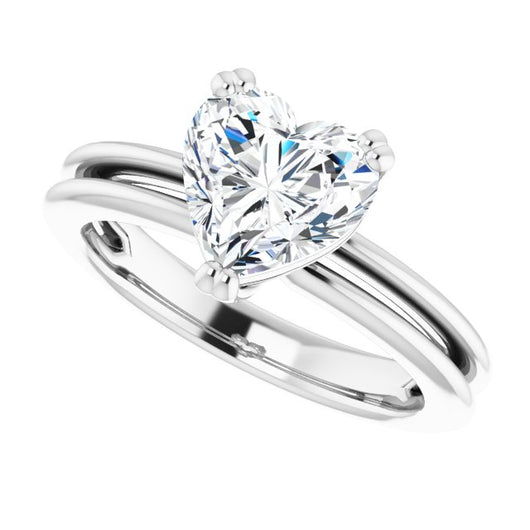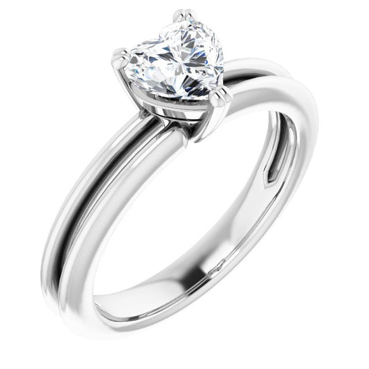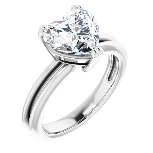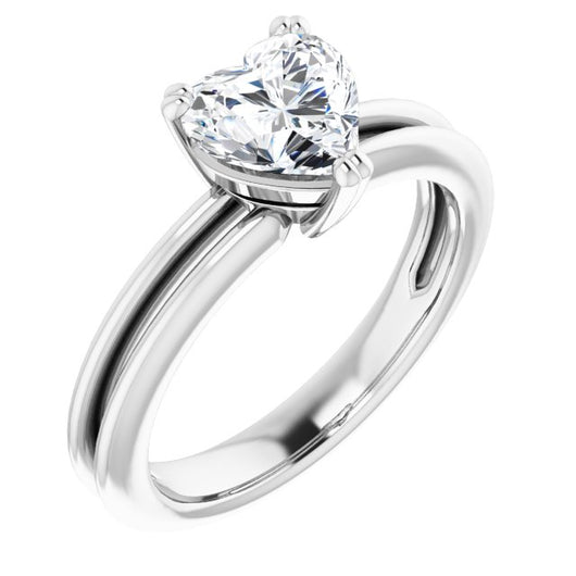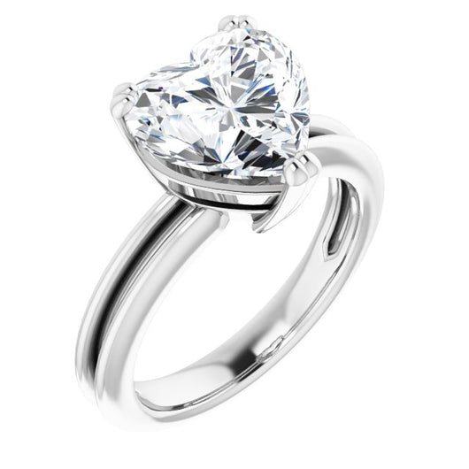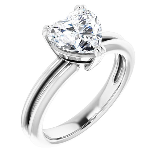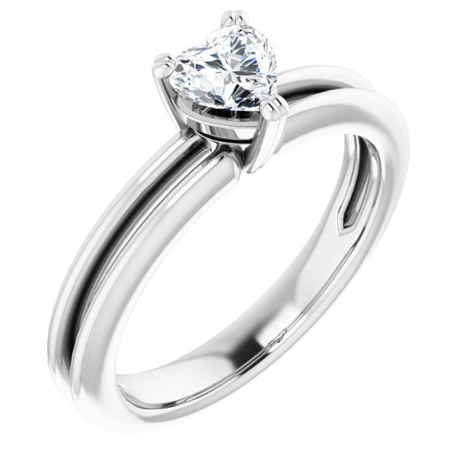 10K White Gold Customizable Heart Cut Solitaire with Grooved Band