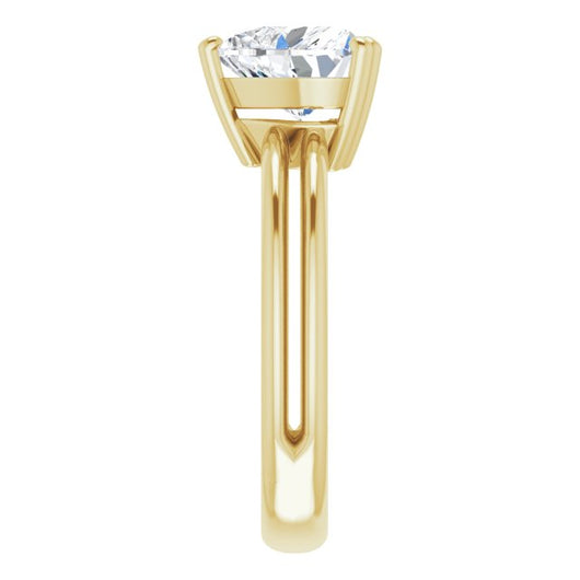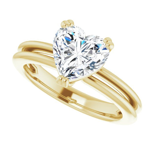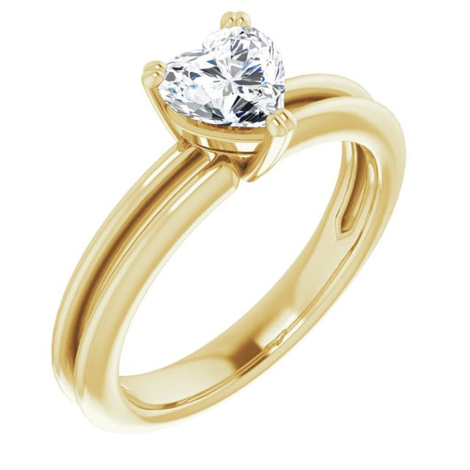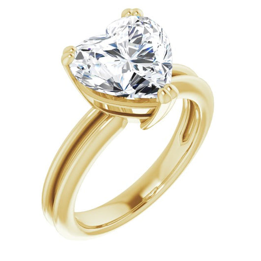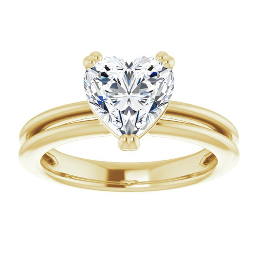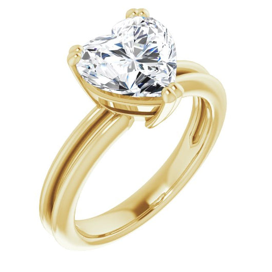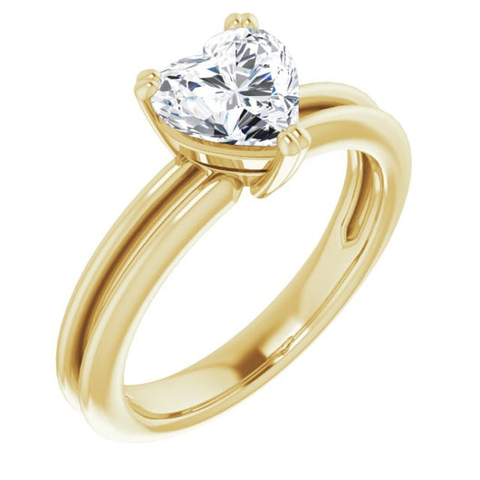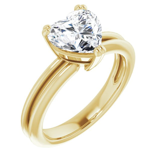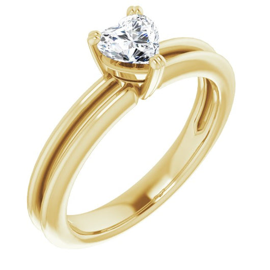 10K Yellow Gold Customizable Heart Cut Solitaire with Grooved Band