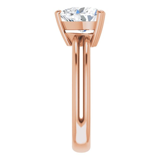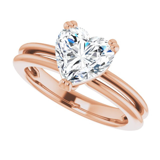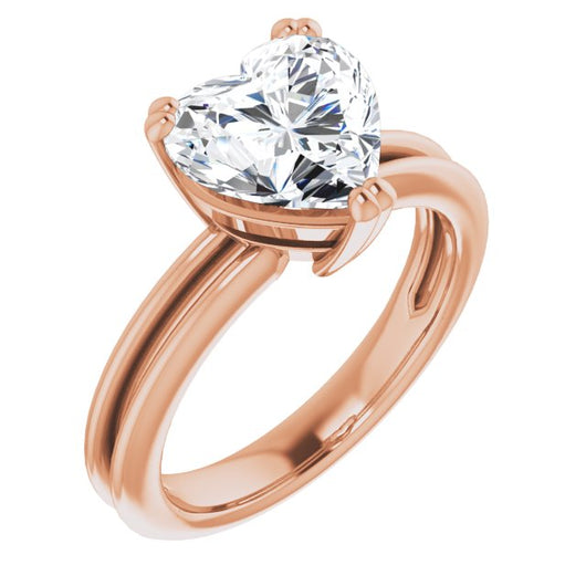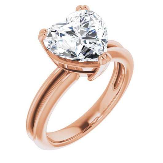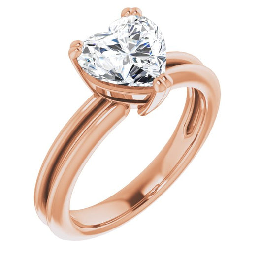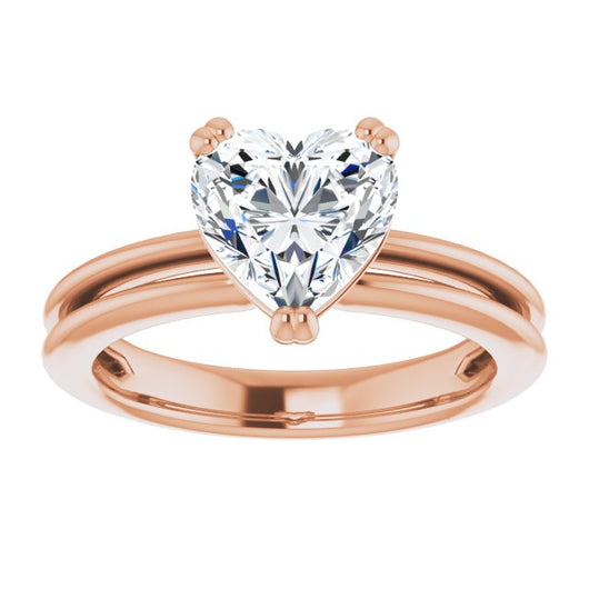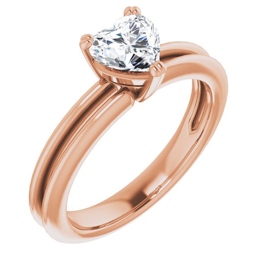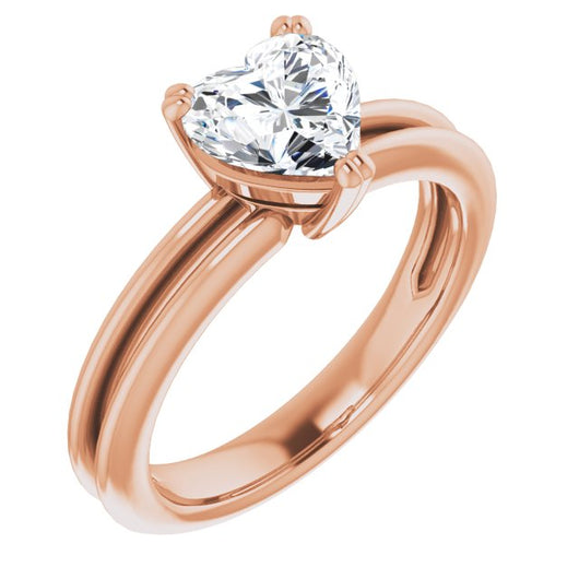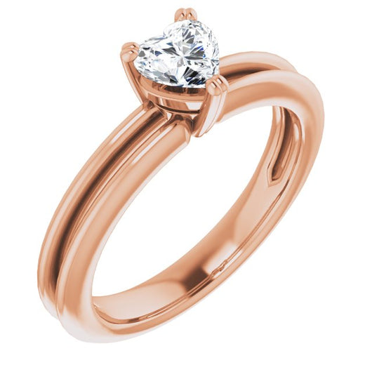 10K Rose Gold Customizable Heart Cut Solitaire with Grooved Band