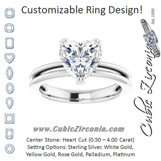 Cubic Zirconia Engagement Ring- The Evie (Customizable Heart Cut Solitaire with Grooved Band)