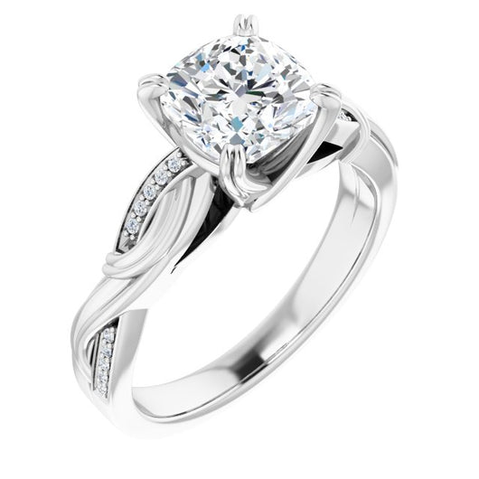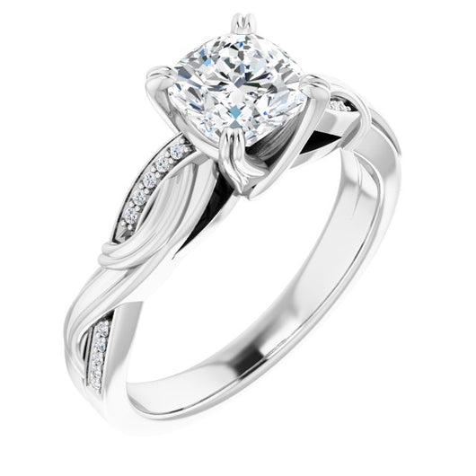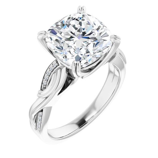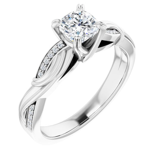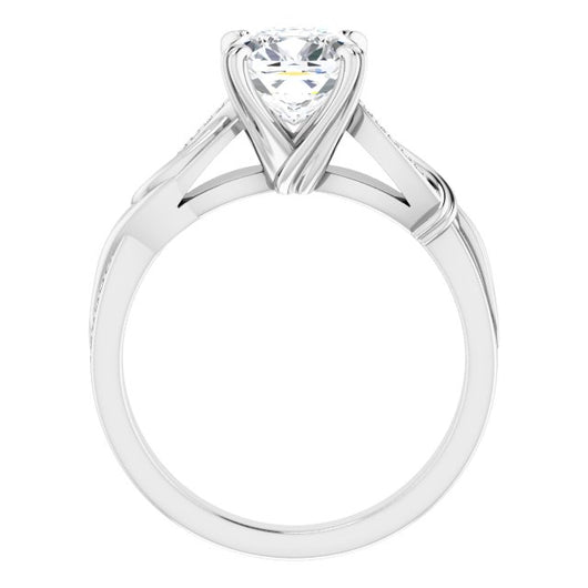 Cubic Zirconia Engagement Ring- The Fabiola (Customizable Cathedral-raised Cushion Cut Design featuring Rope-Braided Half-Pavé Band)