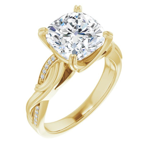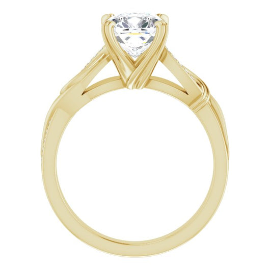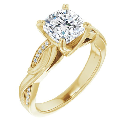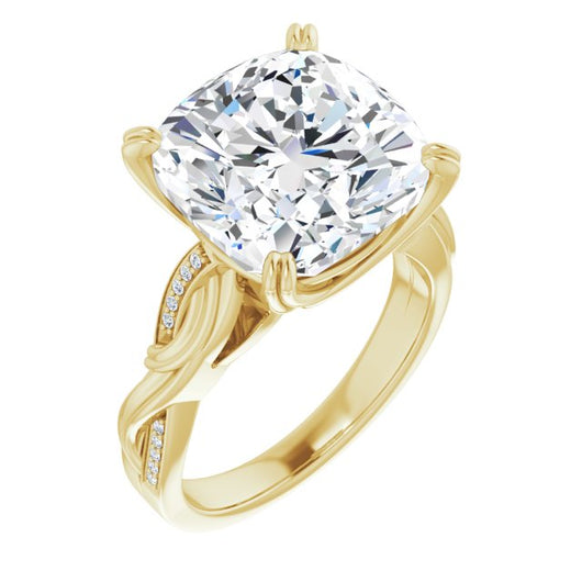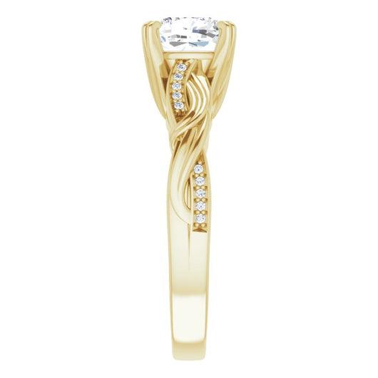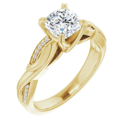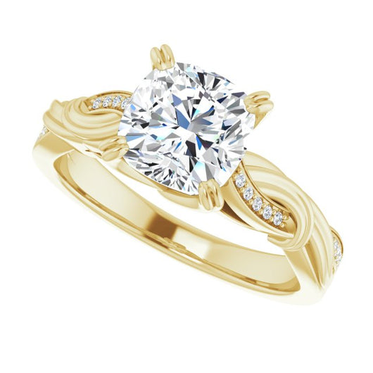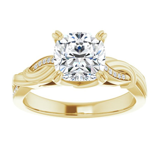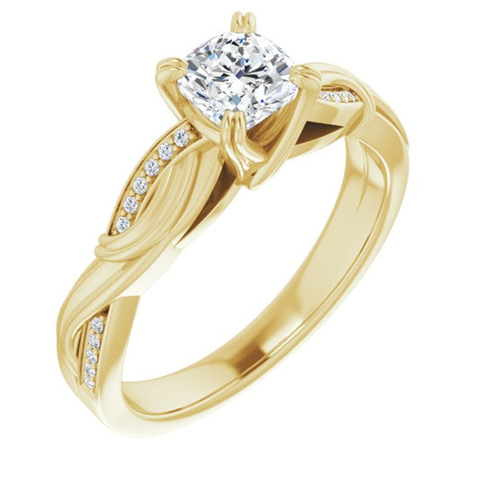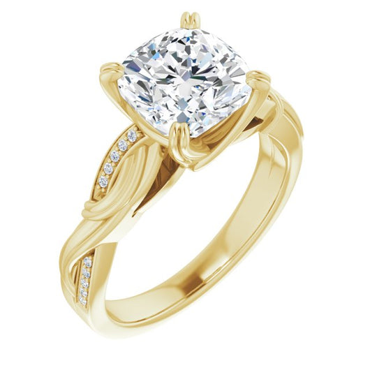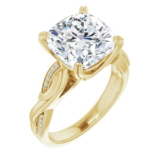 10K Yellow Gold Customizable Cathedral-raised Cushion Cut Design featuring Rope-Braided Half-Pavé Band