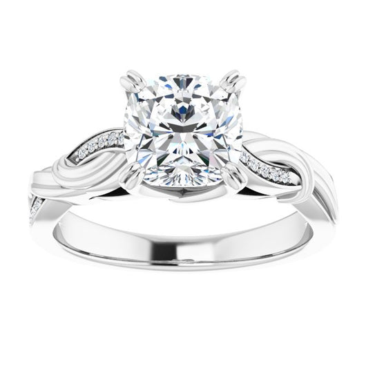 10K White Gold Customizable Cathedral-raised Cushion Cut Design featuring Rope-Braided Half-Pavé Band