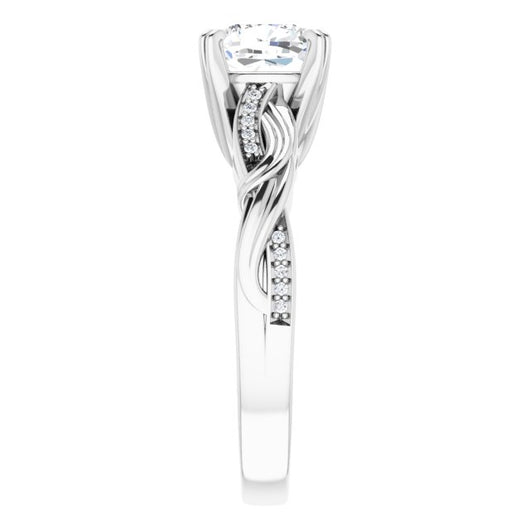 The Fabiola will twist around your beloved's finger, intertwining in its braided-rope style band design a lasting reminder of your love and devotion. Love knots were the inspiration for this design. We think our experienced jewelry artisans have manufactured that organic and sentimental feel into a stunning modern engagement ring that will have timeless appeal. A half-pavé ribbon of 20* round-cut, pinpoint-set 0.80 mm* accent stones adds a dash of class to the tapered band made in the precious metal of your choice.