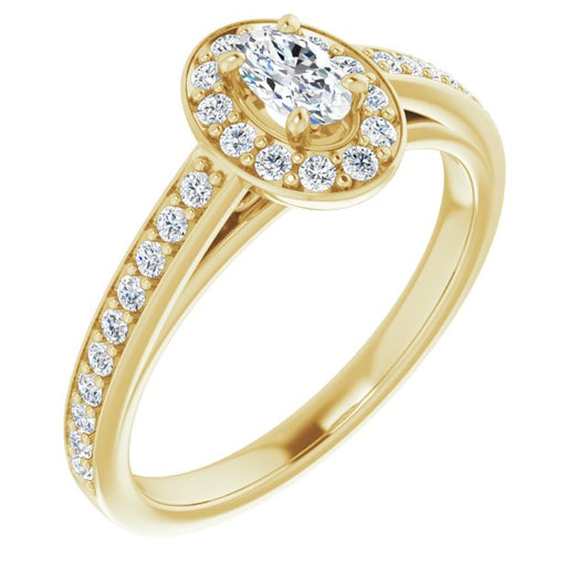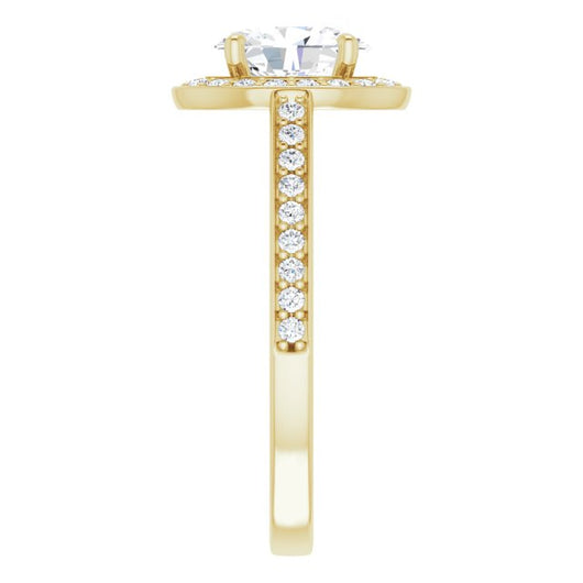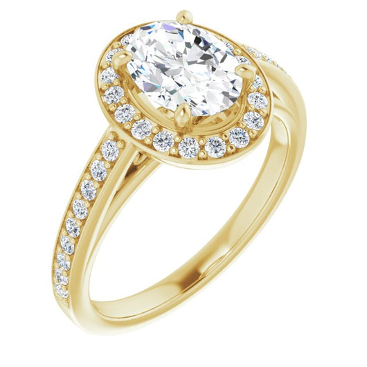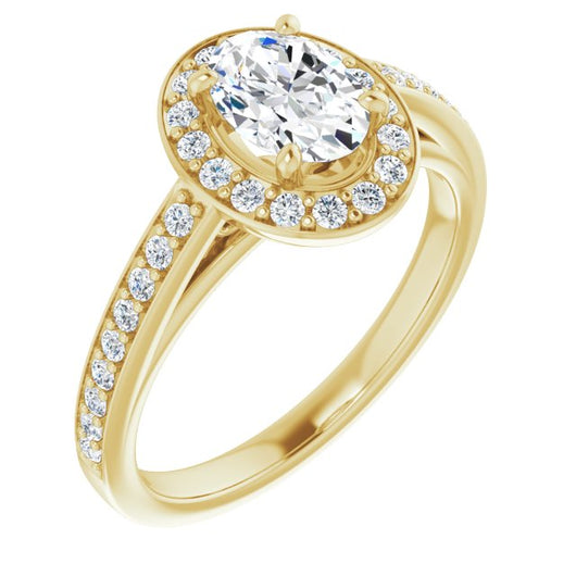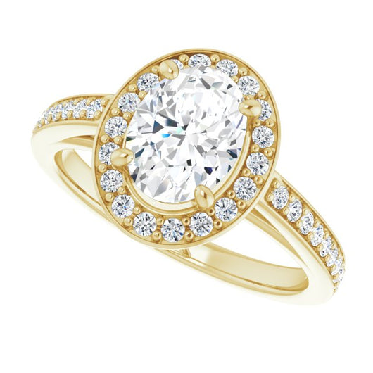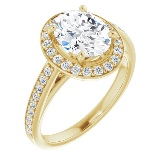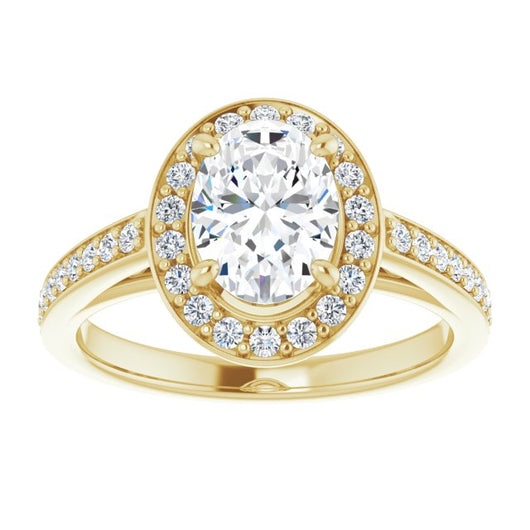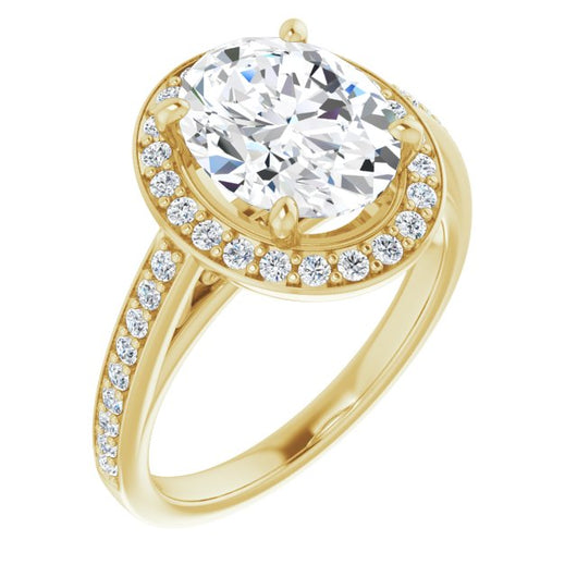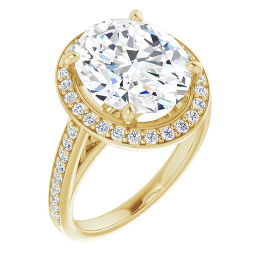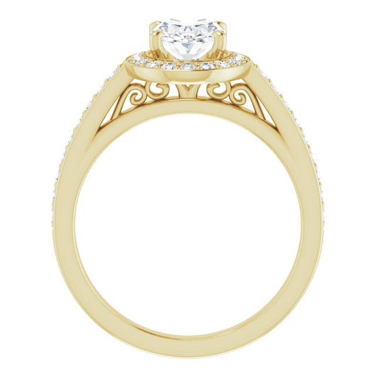 10K Yellow Gold Customizable Oval Cut Style with Halo and Sculptural Trellis