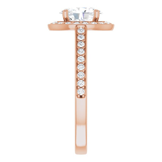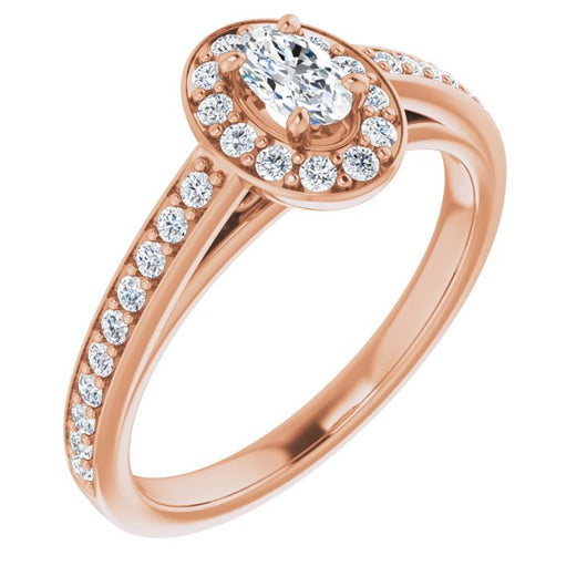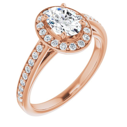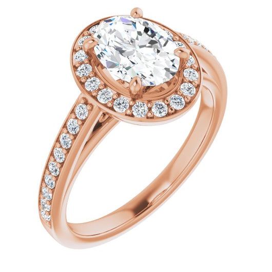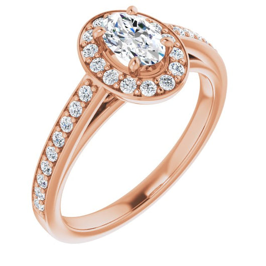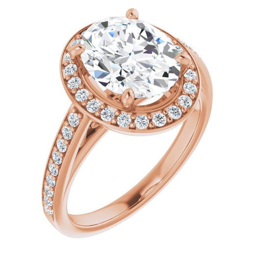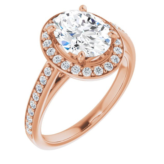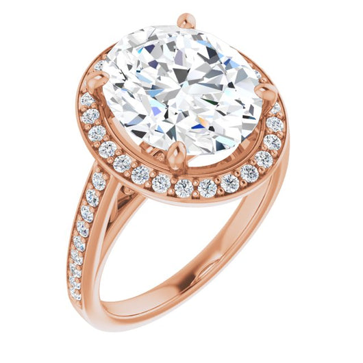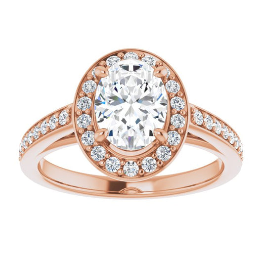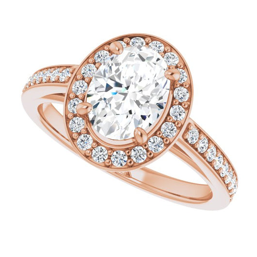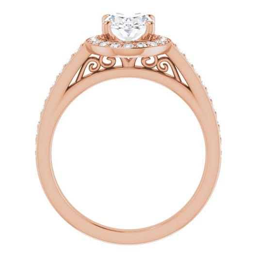 10K Rose Gold Customizable Oval Cut Style with Halo and Sculptural Trellis