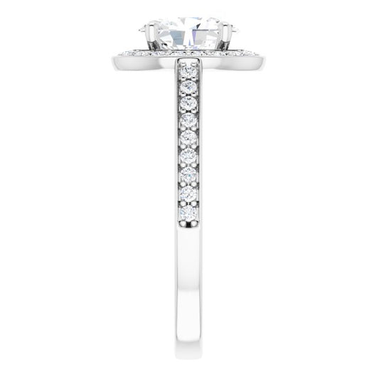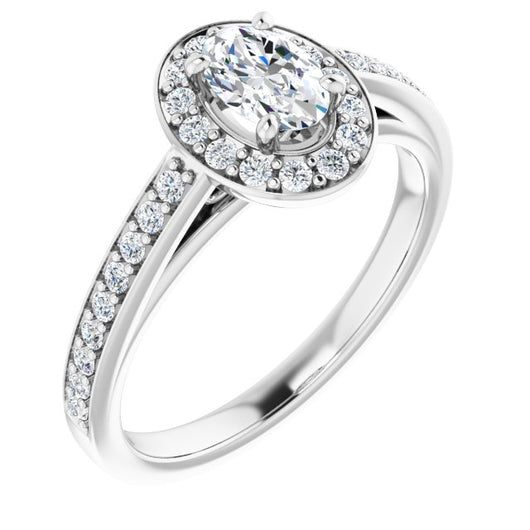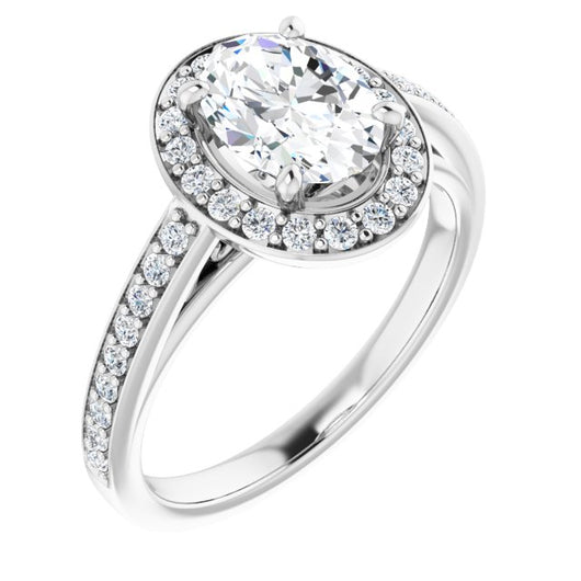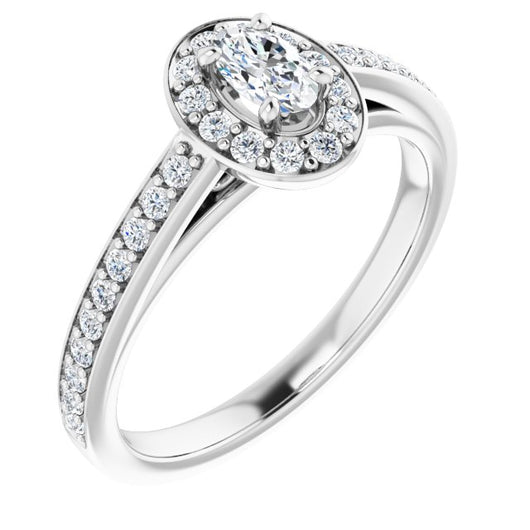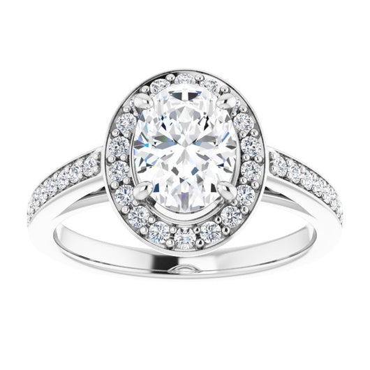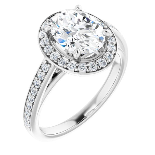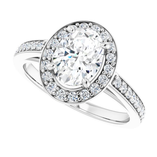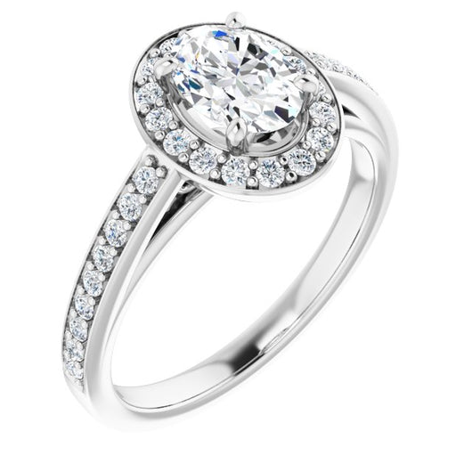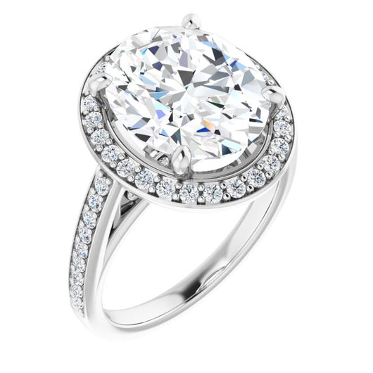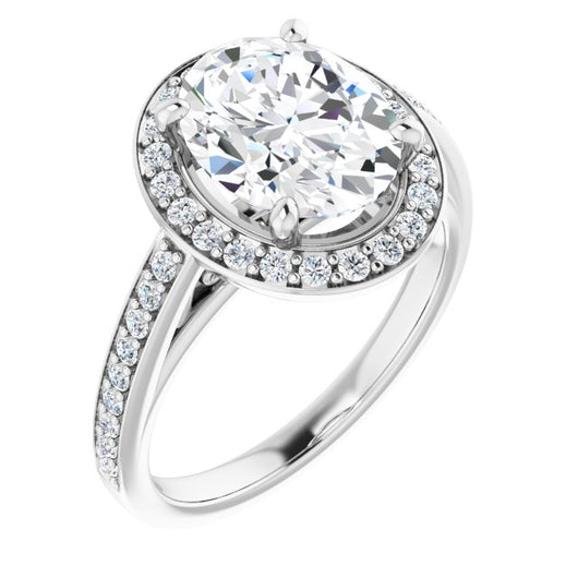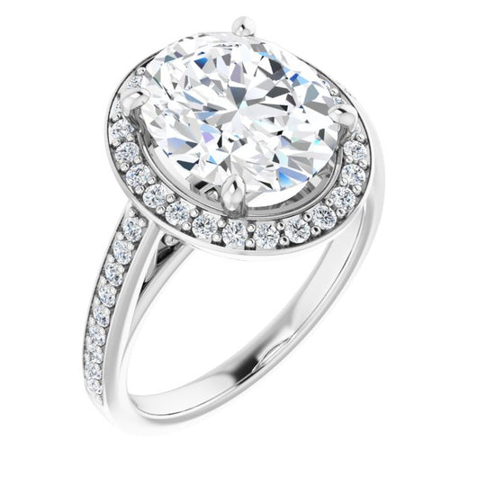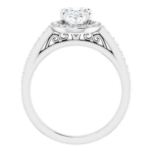 10K White Gold Customizable Oval Cut Style with Halo and Sculptural Trellis