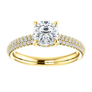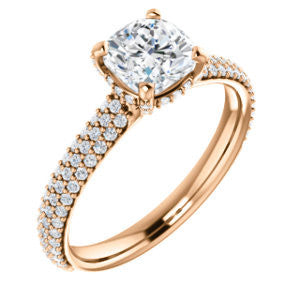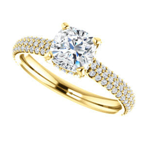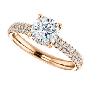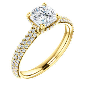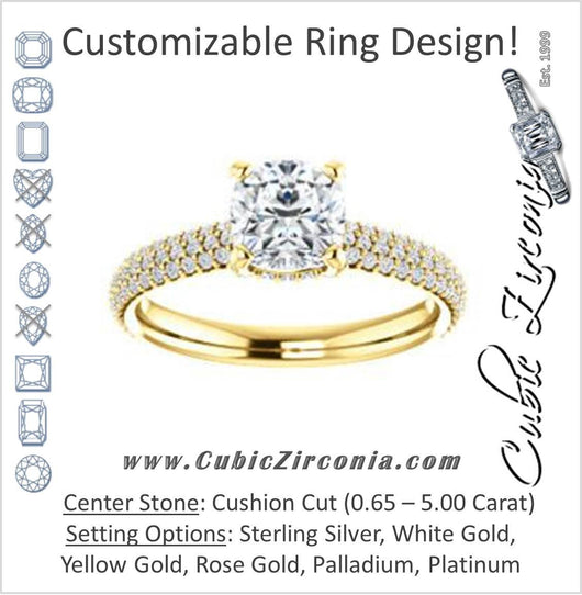 Cubic Zirconia Engagement Ring- The Fatima (Customizable Cushion Cut Center with Triple Pavé Band)