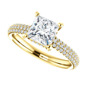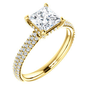 Cubic Zirconia Engagement Ring- The Fatima (Customizable Princess Cut Center with Triple Pavé Band)