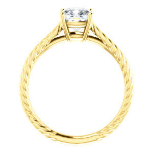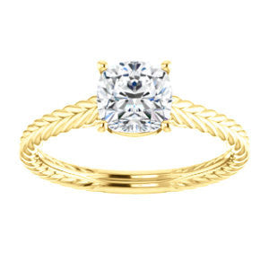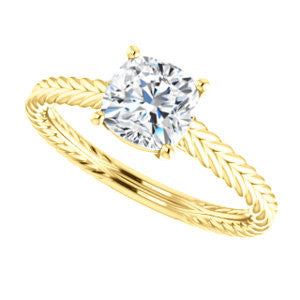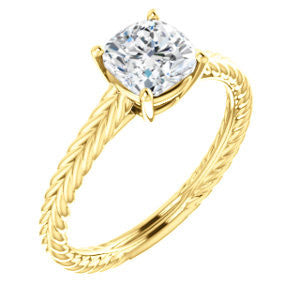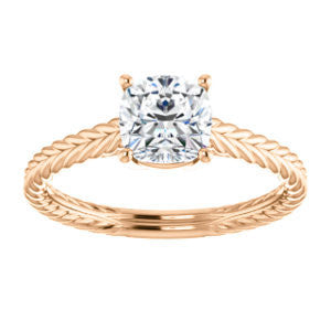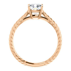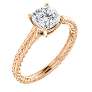 When you find a woman whose beauty is as timeless as an Italian Renaissance painting, a modern trinket simply won't do. The lady who took your breath away deserves a ring that is as classically lovely as she is.The Florence, a vintage, hand-engraved rope-banded solitaire ring topped with a single diamond-quality 5A cubic zirconia stone, was aptly named for just such comeliness. The Cushion Cut solitaire sparkles above a design that simply oozes an old-world style. Take your pick for the carat size of that center stone from 0.65 to 5.0 carats, and you’ll also choose the precious metal for manufacturing (12 options). We’ll make The Florence for you with just the desired center stone size and precious metal you want. But never forget, it’s the band that really sets The Florence apart: a fresh engagement ring look she's dreamed about at a price you can afford without going into indentured servitude.