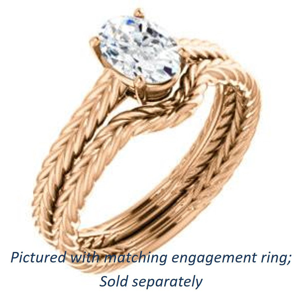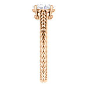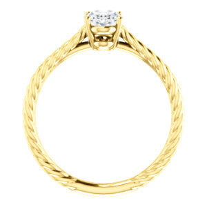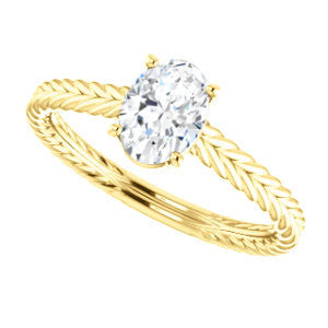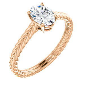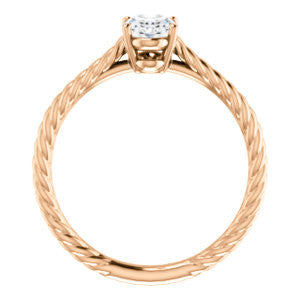 When you find a woman whose beauty is as timeless as an Italian Renaissance painting, a modern trinket simply won't do. The lady who took your breath away deserves a ring that is as classically lovely as she is.The Florence, a vintage, hand-engraved rope-banded solitaire ring topped with a single diamond-quality 5A cubic zirconia stone, was aptly named for just such comeliness. The Oval Cut solitaire sparkles above a design that simply oozes an old-world style. Take your pick for the carat size of that center stone from 0.25 to 5.0 carats, and you’ll also choose the precious metal for manufacturing (12 options). We’ll make The Florence for you with just the desired center stone size and precious metal you want. But never forget, it’s the band that really sets The Florence apart: a fresh engagement ring look she's dreamed about at a price you can afford without going into indentured servitude.