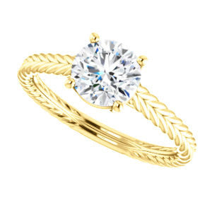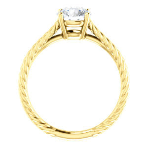 When you find a woman whose beauty is as timeless as an Italian Renaissance painting, a modern trinket simply won't do. The lady who took your breath away deserves a ring that is as classically lovely as she is.The Florence, a vintage, hand-engraved rope-banded solitaire ring topped with a single diamond-quality 5A cubic zirconia stone, was aptly named for just such comeliness. The Round Cut solitaire sparkles above a design that simply oozes an old-world style. Take your pick for the carat size of that center stone from 0.25 to 3.50 carats, and you’ll also choose the precious metal for manufacturing (12 options). We’ll make The Florence for you with just the desired center stone size and precious metal you want. But never forget, it’s the band that really sets The Florence apart: a fresh engagement ring look she's dreamed about at a price you can afford without going into indentured servitude.