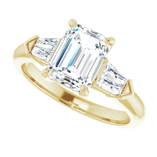 10K Yellow Gold Customizable 5-stone Design with Emerald/Radiant Cut Center and Quad Baguettes