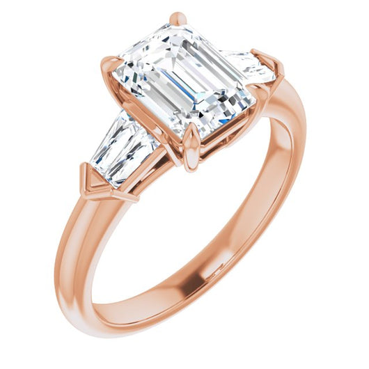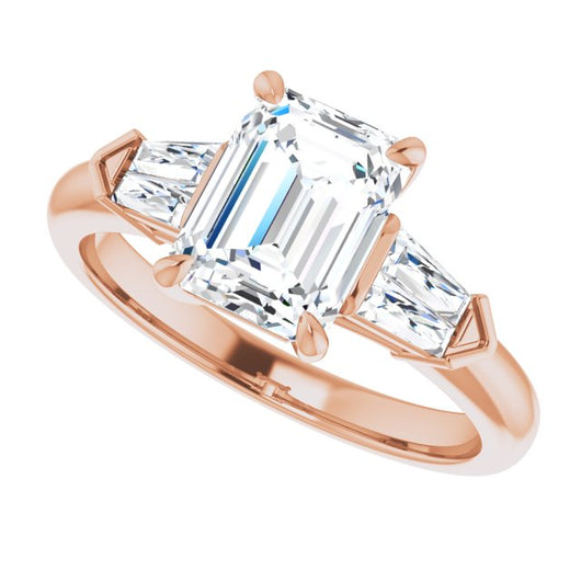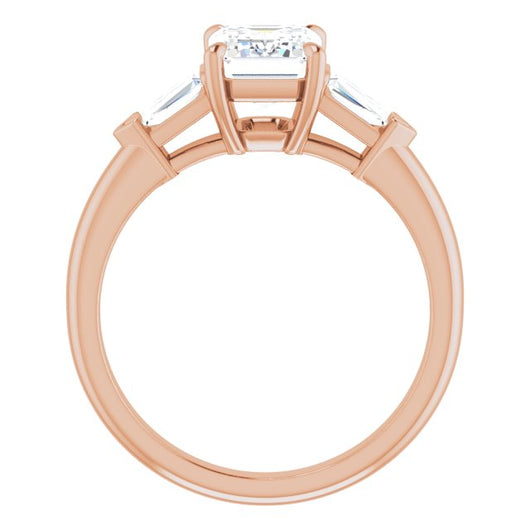 10K Rose Gold Customizable 5-stone Design with Emerald/Radiant Cut Center and Quad Baguettes