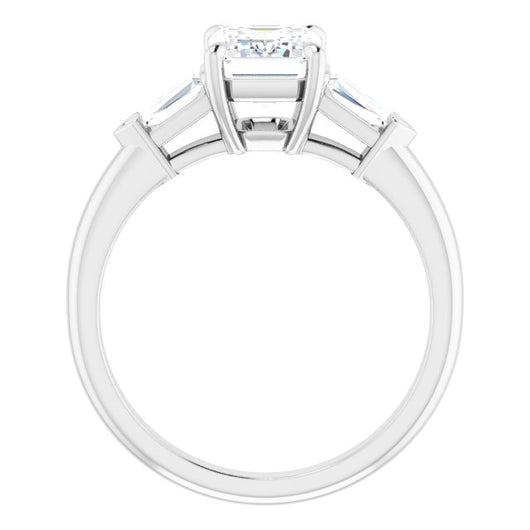 10K White Gold Customizable 5-stone Design with Emerald/Radiant Cut Center and Quad Baguettes
