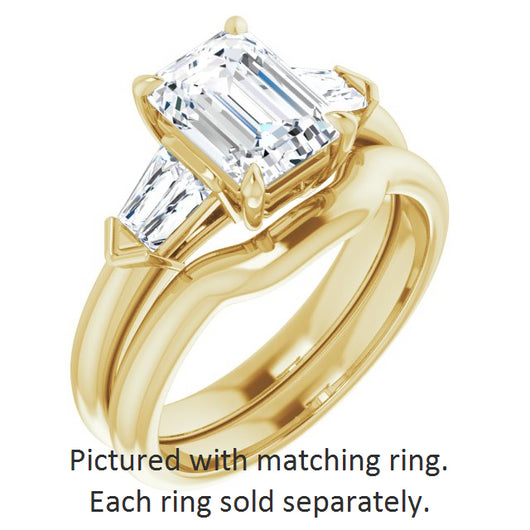 Center Stone Shape: Radiant Cut (as pictured with Emerald Cut). See this customizable ring set with other available center stone shapes here: customize setting.