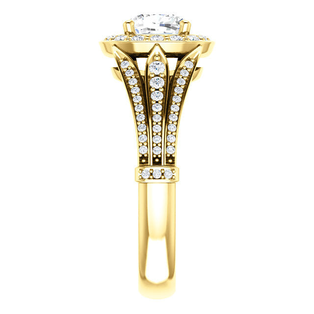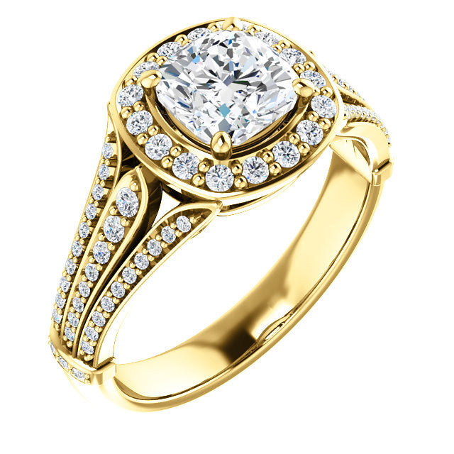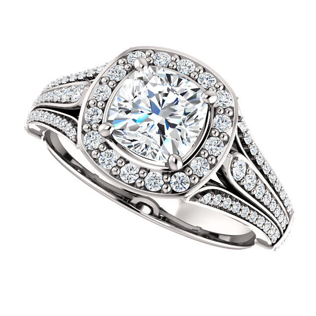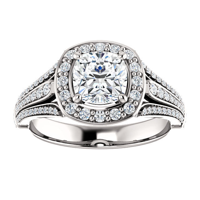 Cubic Zirconia Engagement Ring- The Frannie (Customizable Cushion Cut Style with Halo and Tri-Split Pavé Band)
