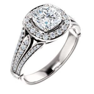 Center Stone Shape: Cushion Cut (as pictured). See this customizable ring set with other available center stone shapes here: customize setting.