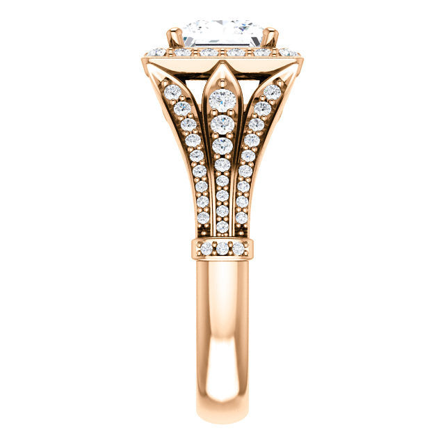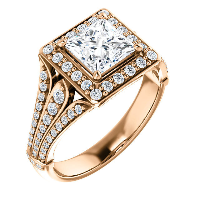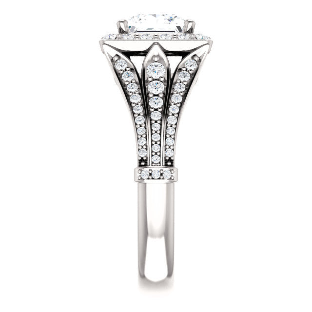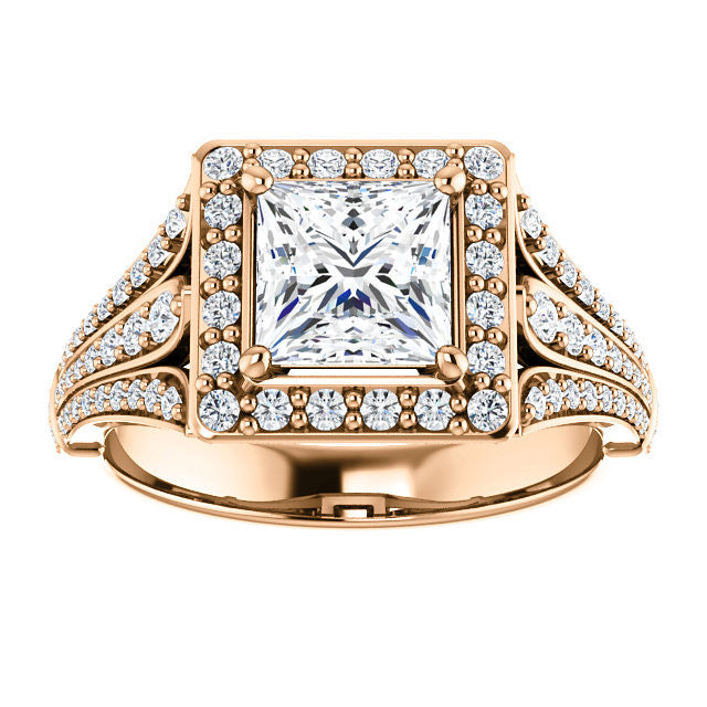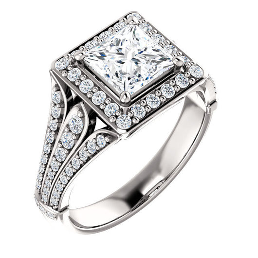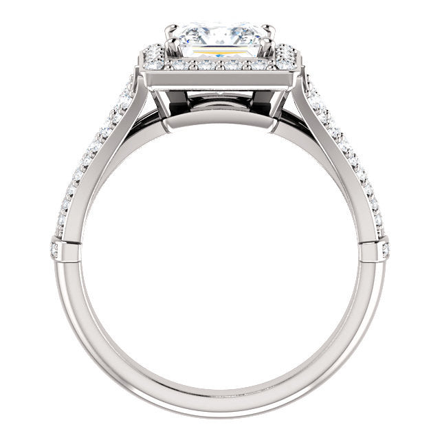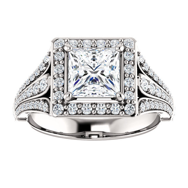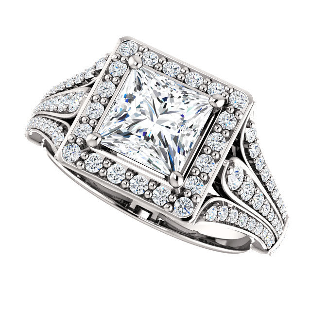Cubic Zirconia Engagement Ring- The Frannie (Customizable Princess Cut Style with Halo and Tri-Split Pavé Band)