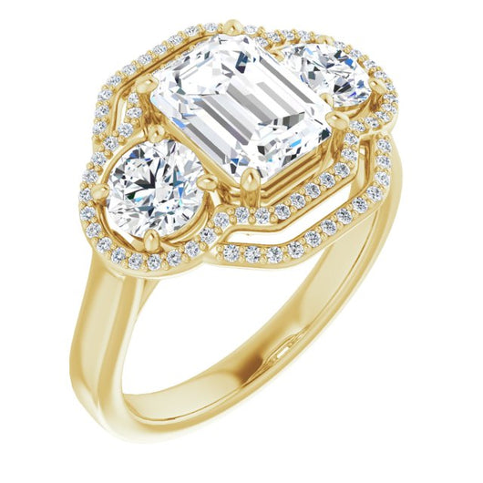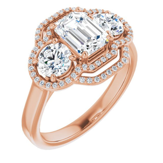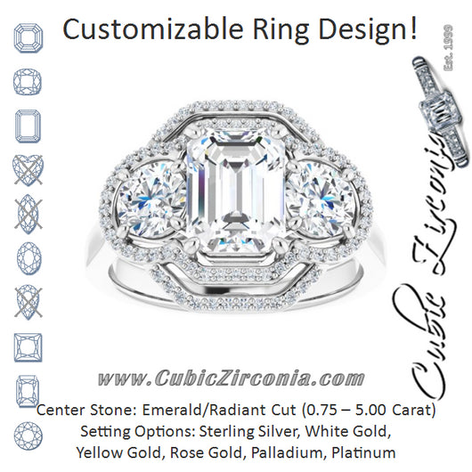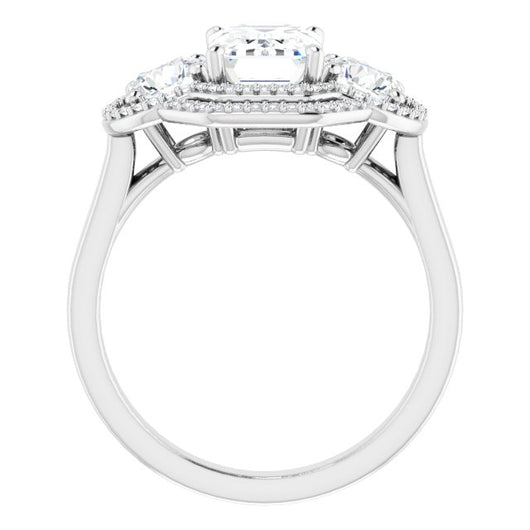 Center Stone Shape: Radiant Cut (as pictured with Emerald Cut). See this customizable ring set with other available center stone shapes here: customize setting.