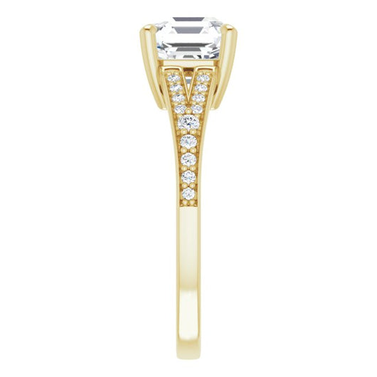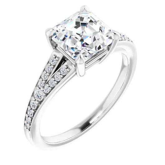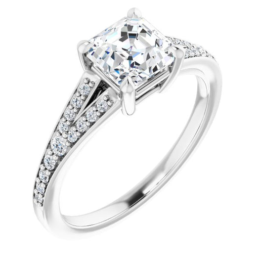 Center Stone Shape: Asscher Cut (as pictured). See this customizable ring set with other available center stone shapes here: customize setting.