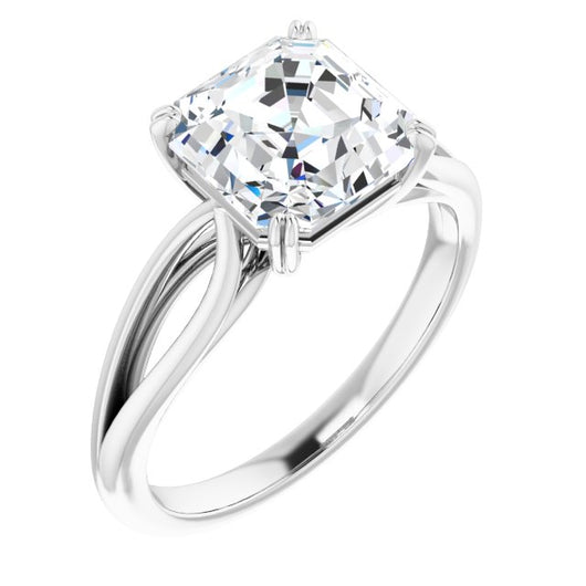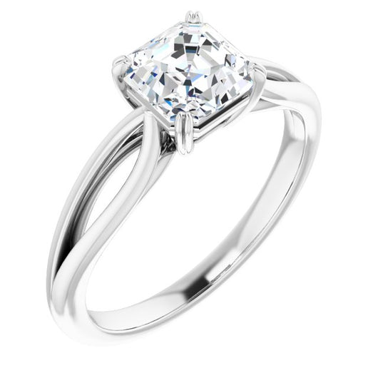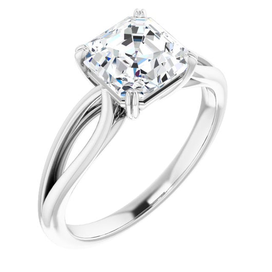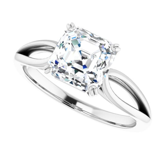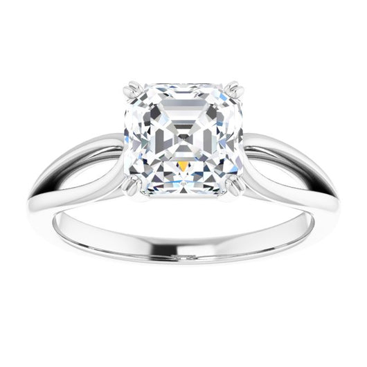 10K White Gold Customizable Asscher Cut Solitaire with Wide-Split Band