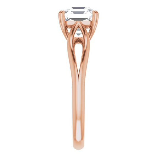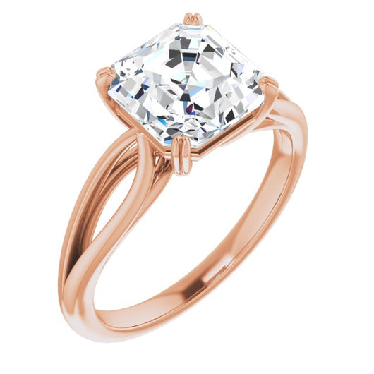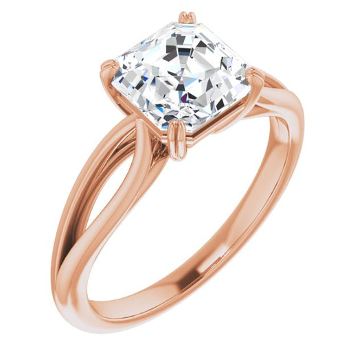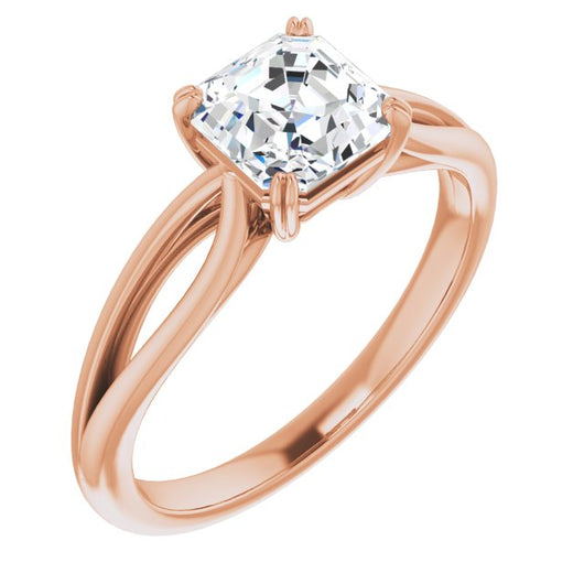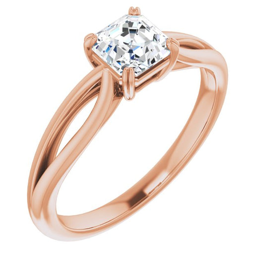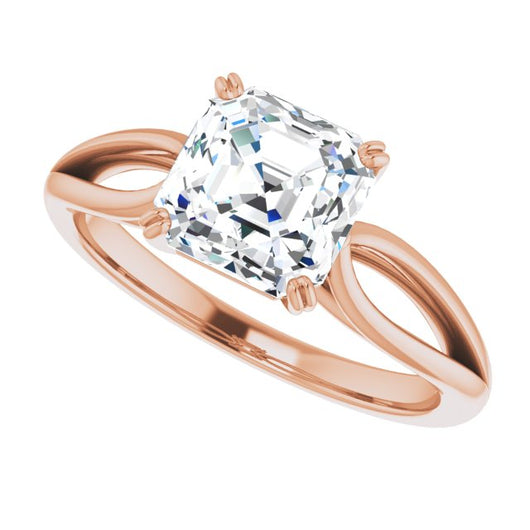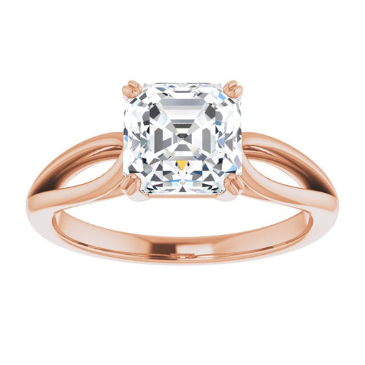 10K Rose Gold Customizable Asscher Cut Solitaire with Wide-Split Band