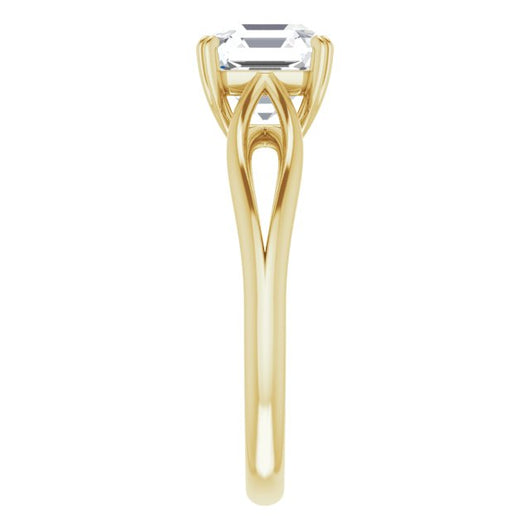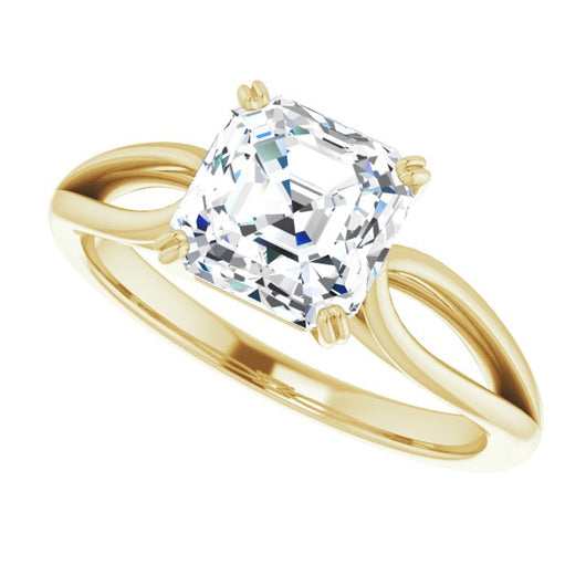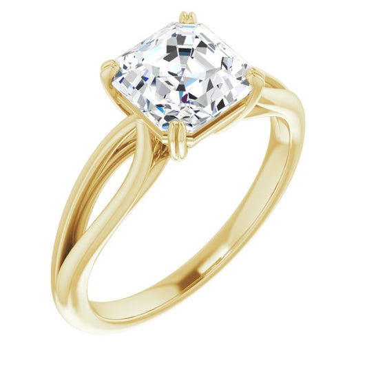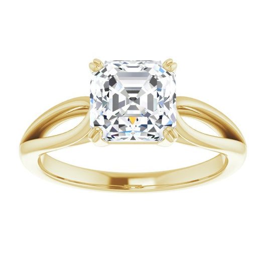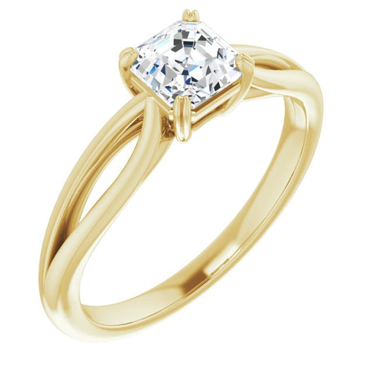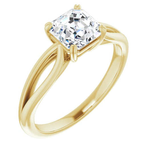 10K Yellow Gold Customizable Asscher Cut Solitaire with Wide-Split Band