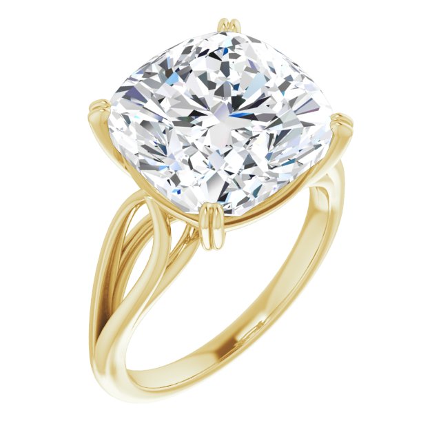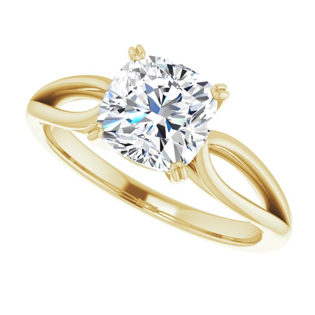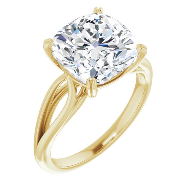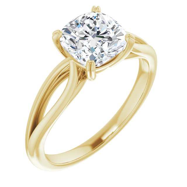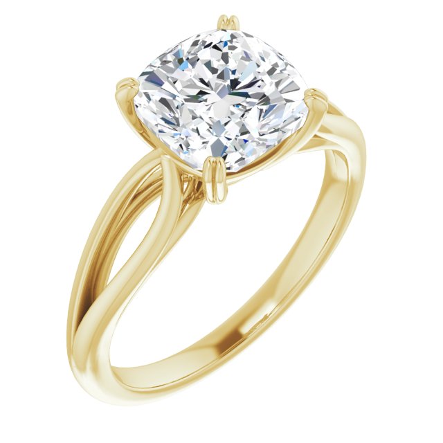 10K Yellow Gold Customizable Cushion Cut Solitaire with Wide-Split Band