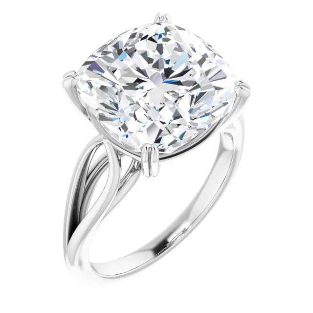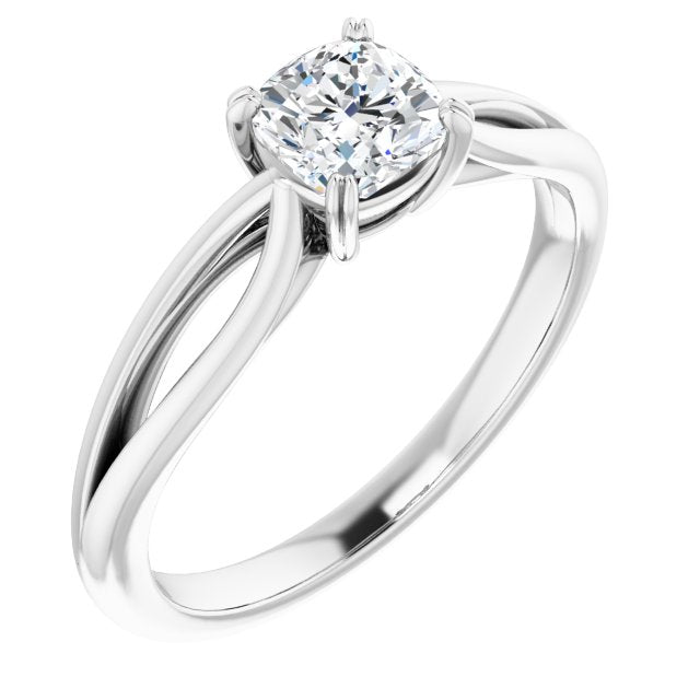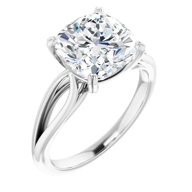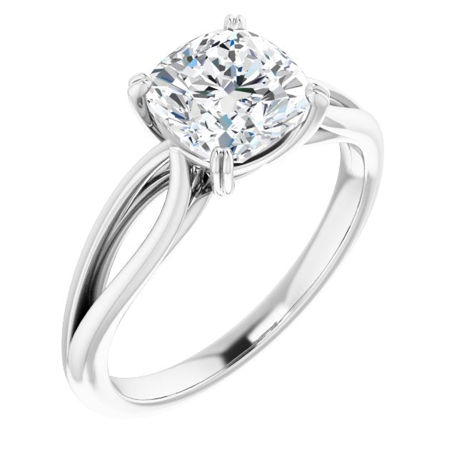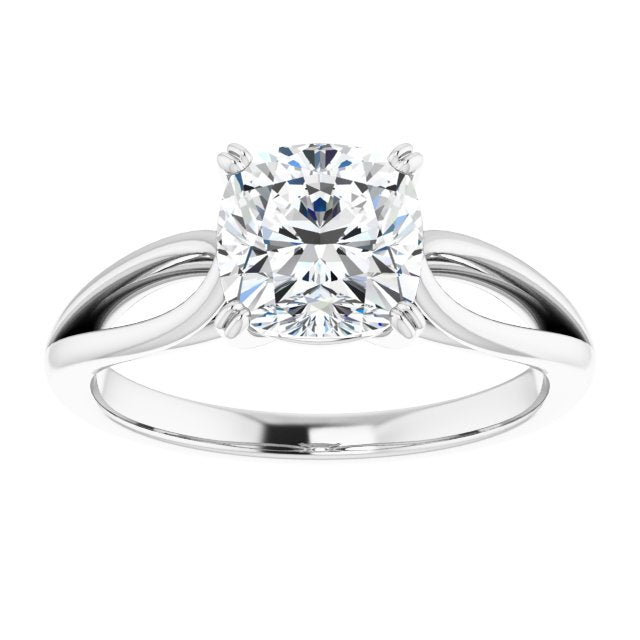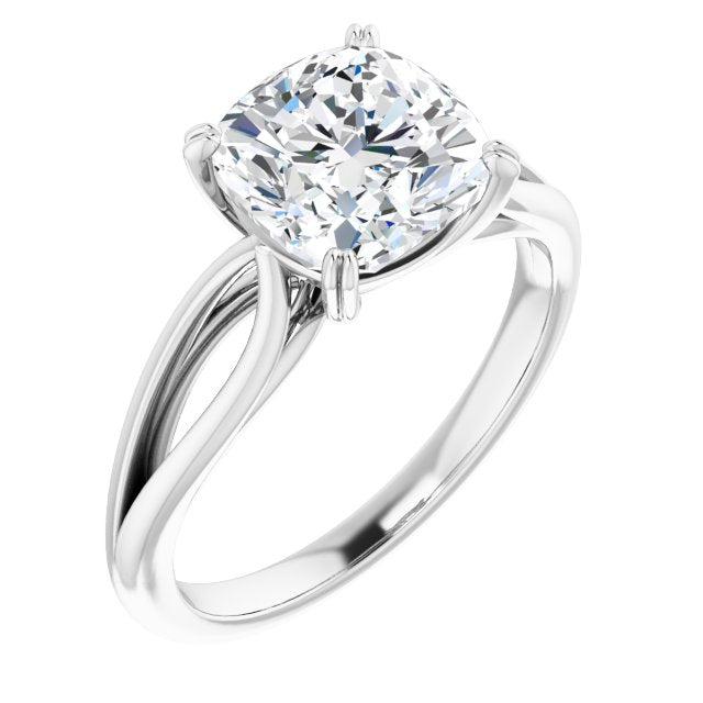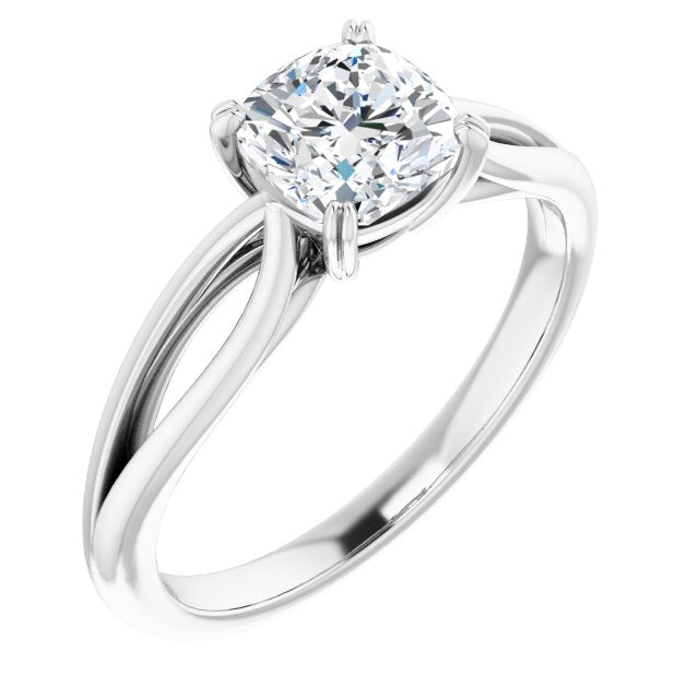 10K White Gold Customizable Cushion Cut Solitaire with Wide-Split Band