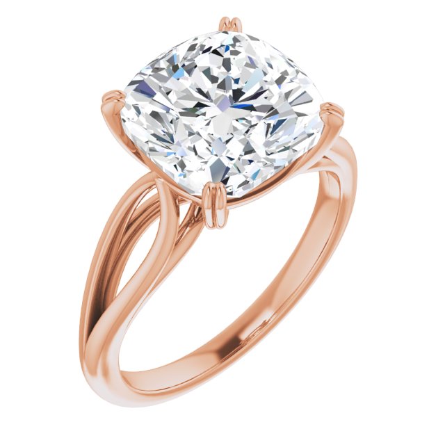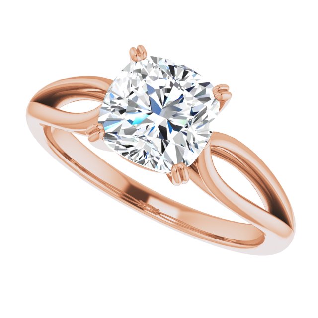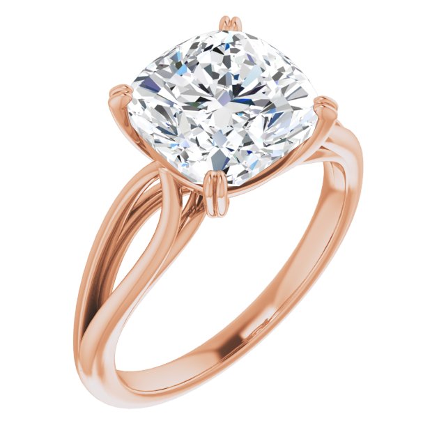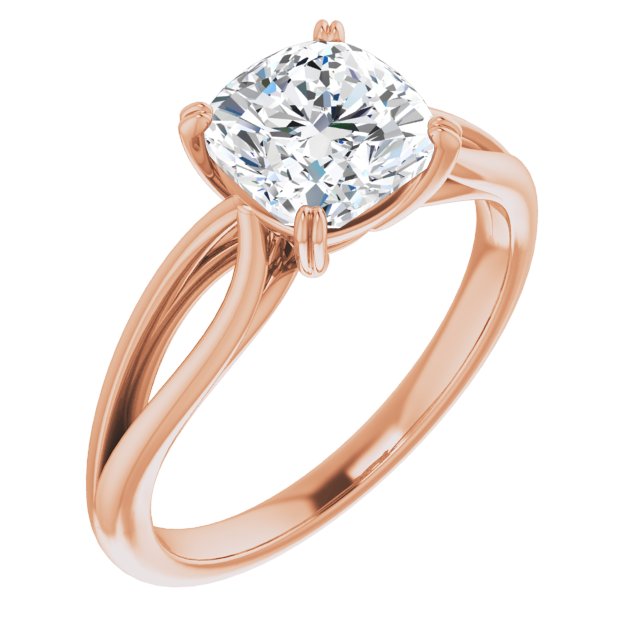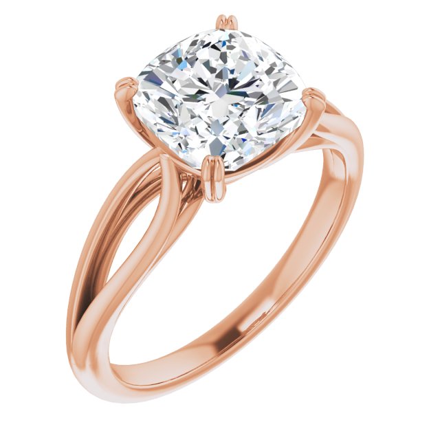 10K Rose Gold Customizable Cushion Cut Solitaire with Wide-Split Band