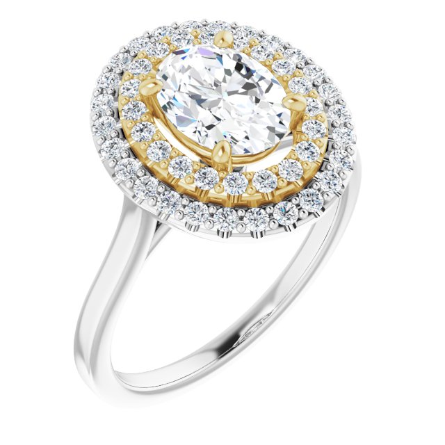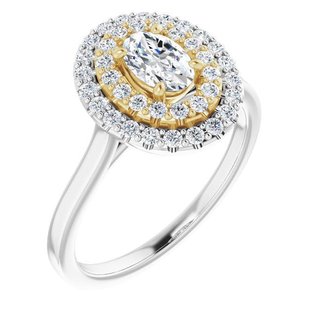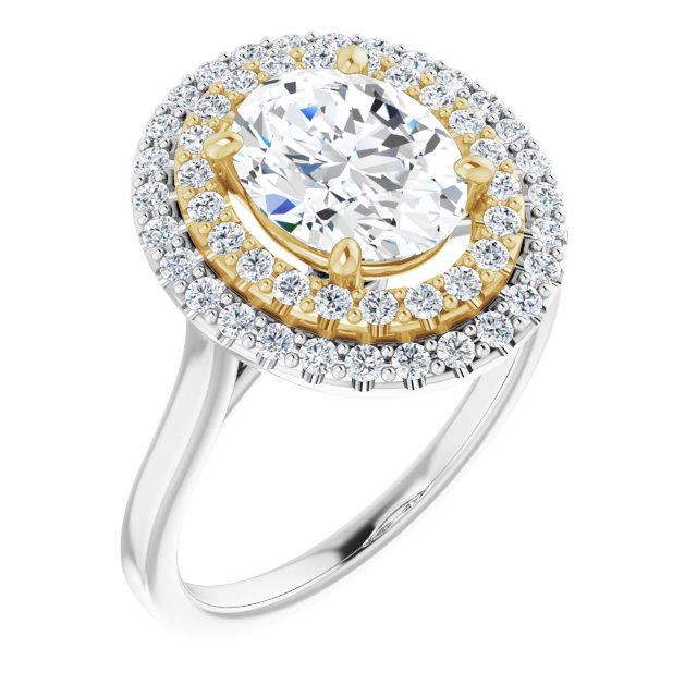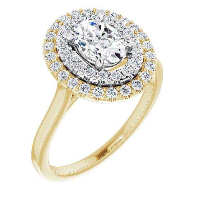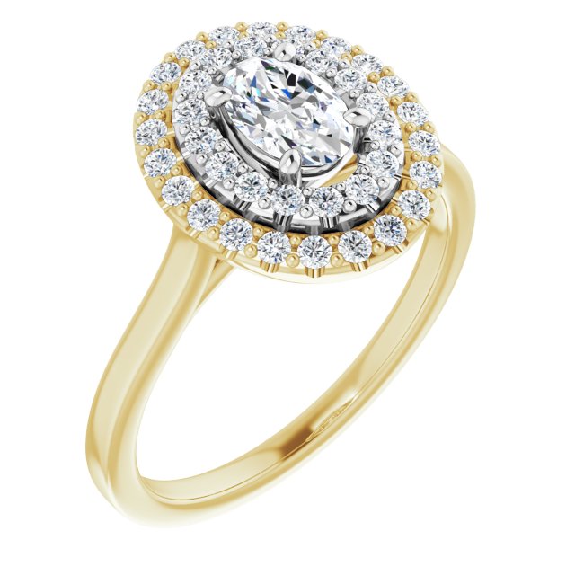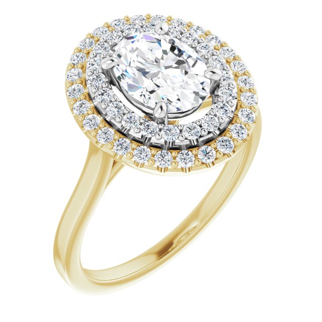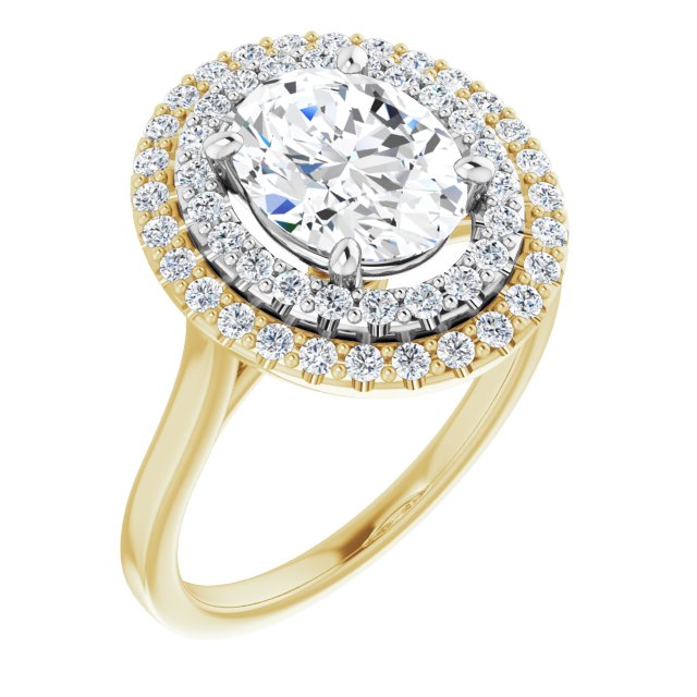 14K Yellow & White Gold Customizable Cathedral-set Oval Cut Design with Double Halo