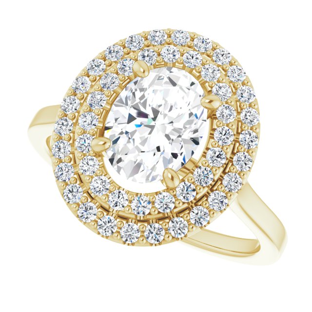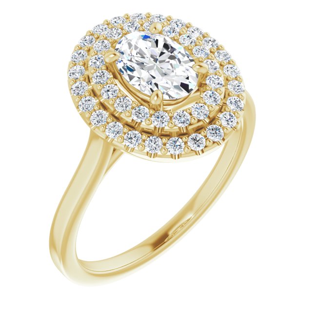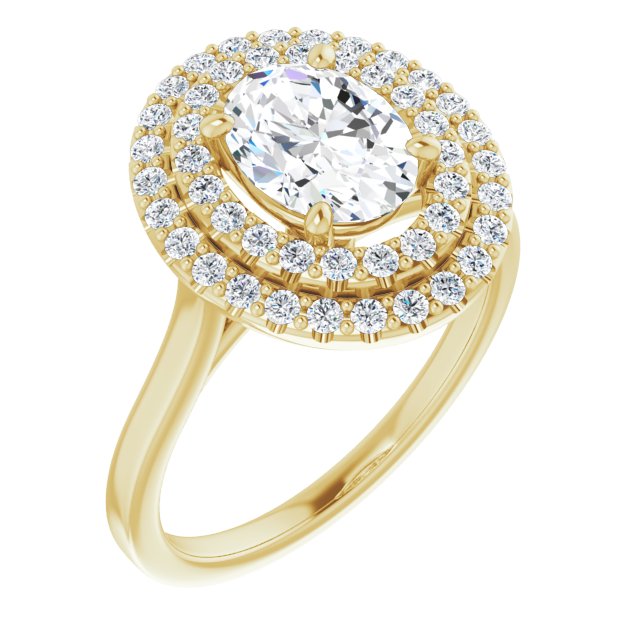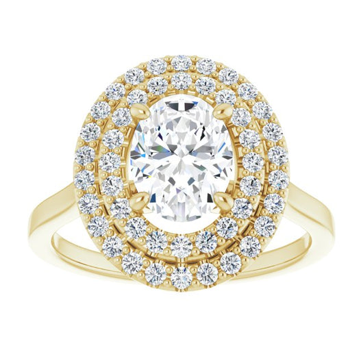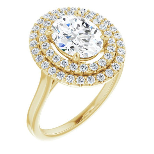 10K Yellow Gold Customizable Cathedral-set Oval Cut Design with Double Halo