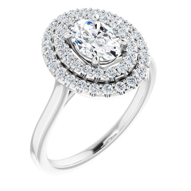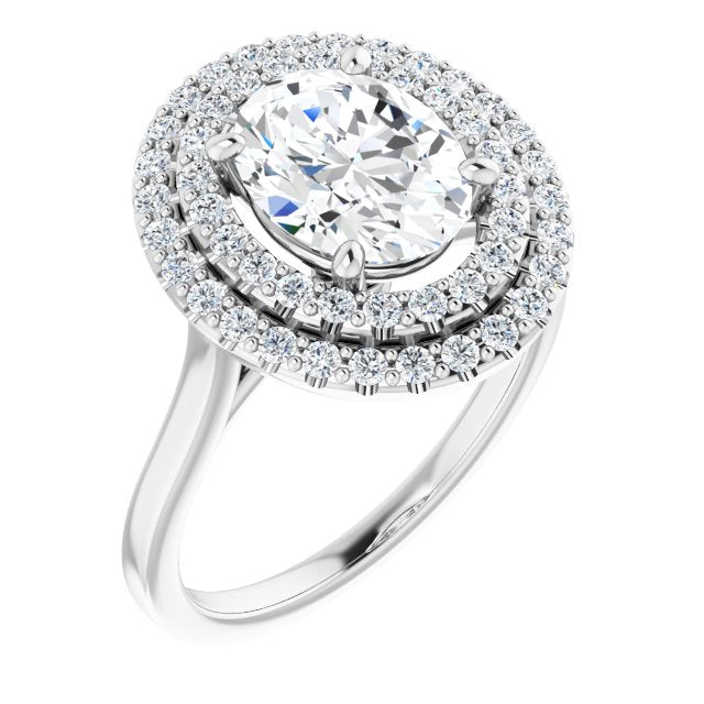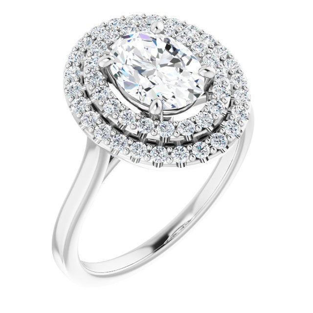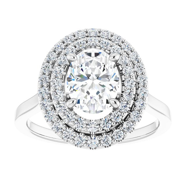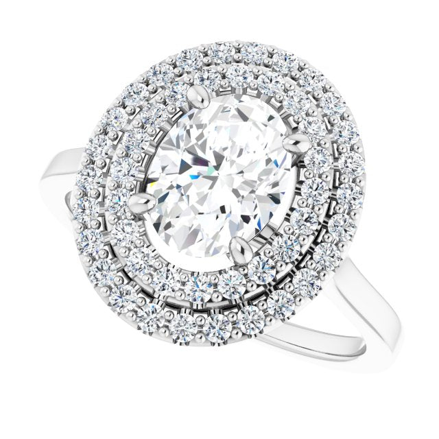10K White Gold Customizable Cathedral-set Oval Cut Design with Double Halo