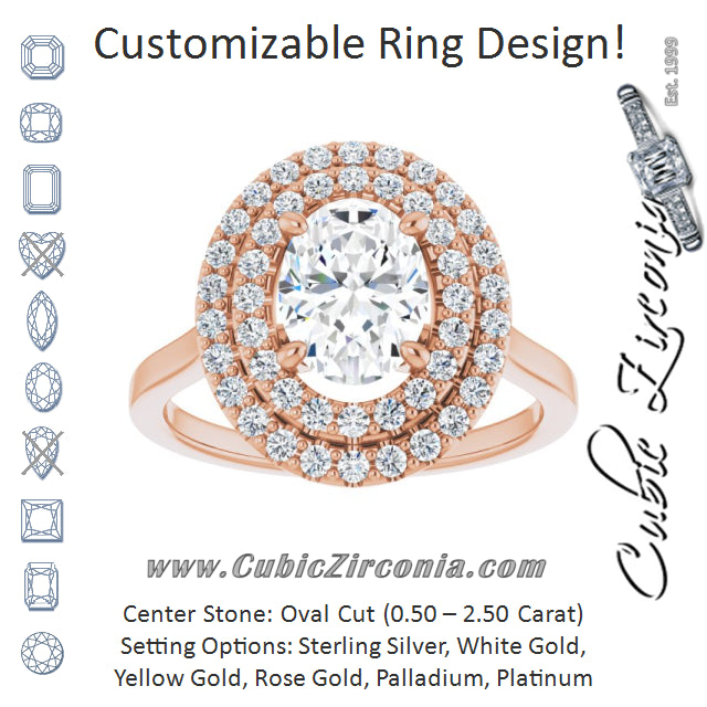 Cubic Zirconia Engagement Ring- The Giuliana (Customizable Cathedral-set Oval Cut Design with Double Halo)