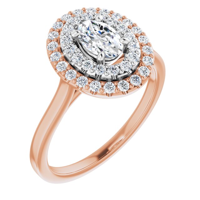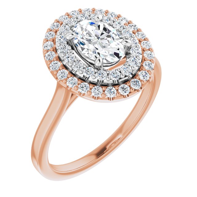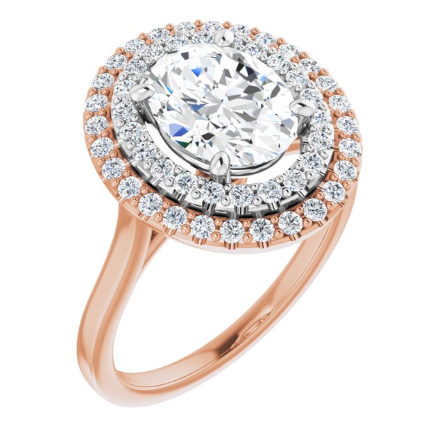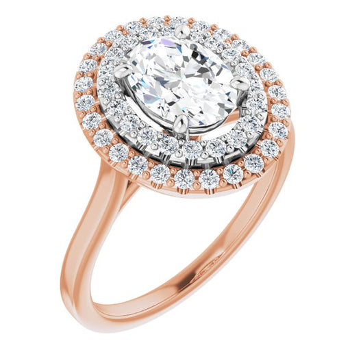 14K Rose & White Gold Customizable Cathedral-set Oval Cut Design with Double Halo