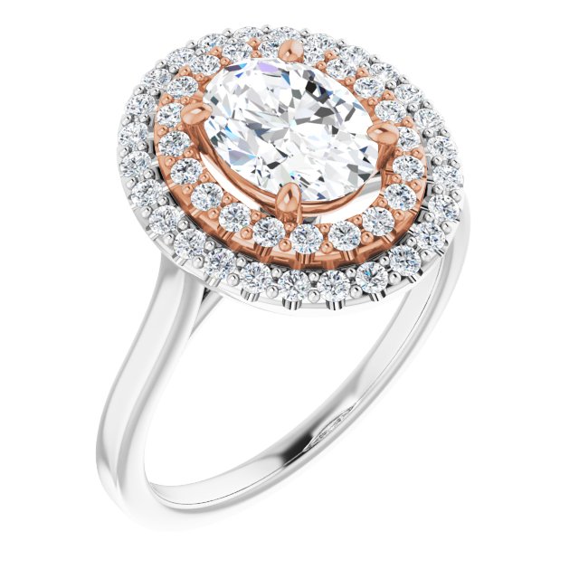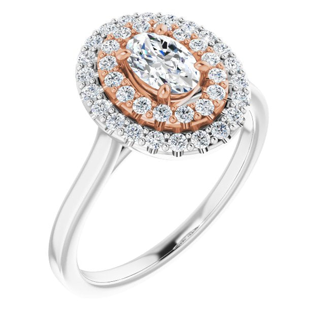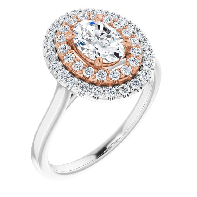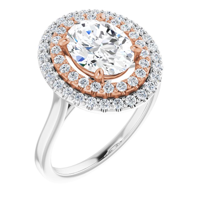 14K White & Rose Gold Customizable Cathedral-set Oval Cut Design with Double Halo