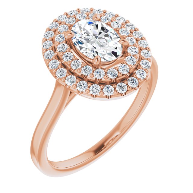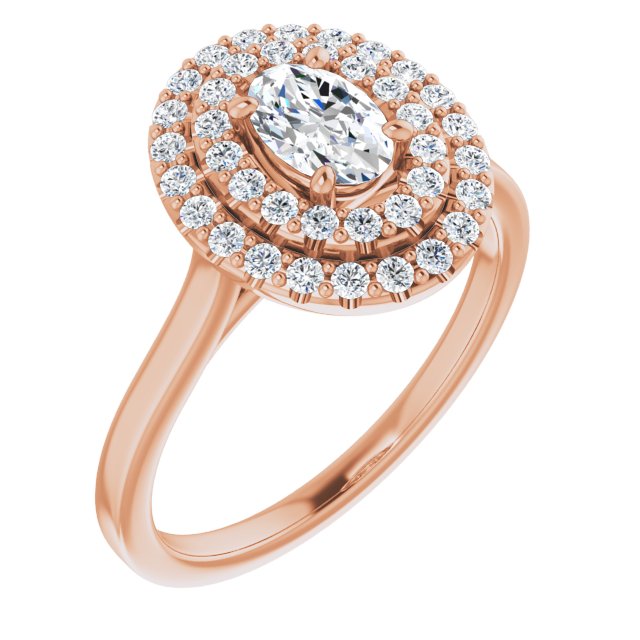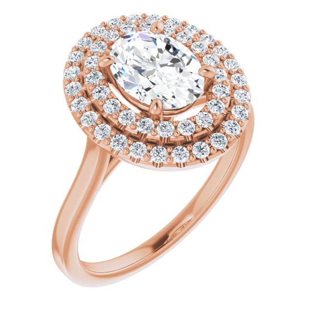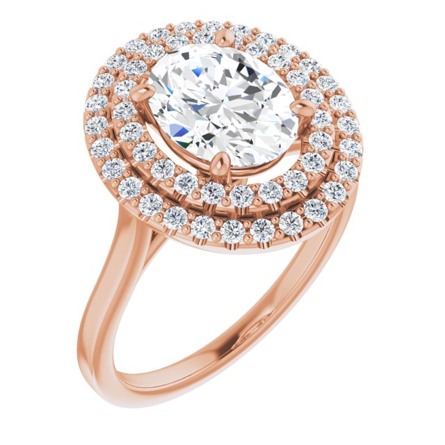 10K Rose Gold Customizable Cathedral-set Oval Cut Design with Double Halo