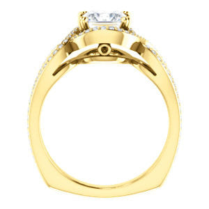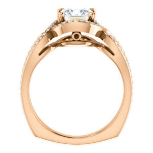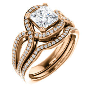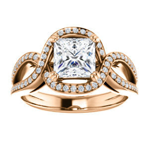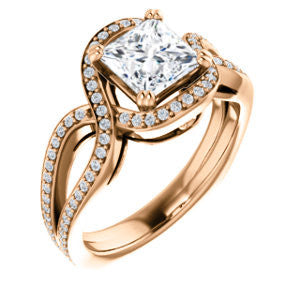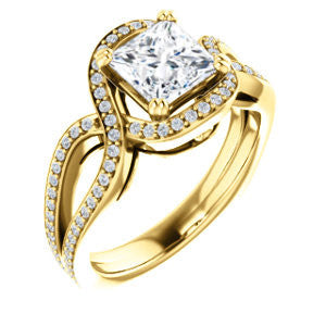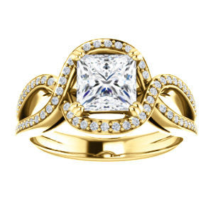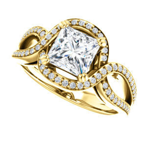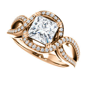 Cubic Zirconia Engagement Ring- The Goldie (Customizable Princess Cut Center with Twisty Split-Pavé Band and Artisan Halo)