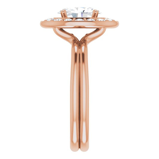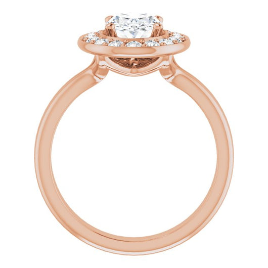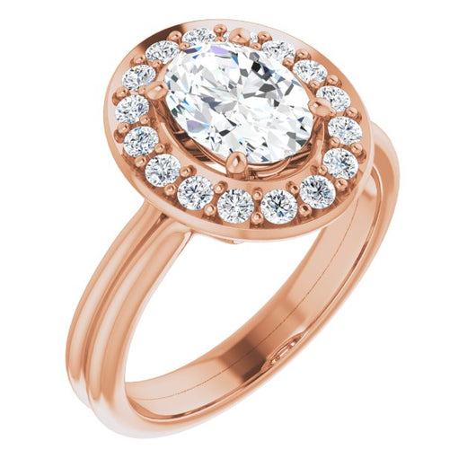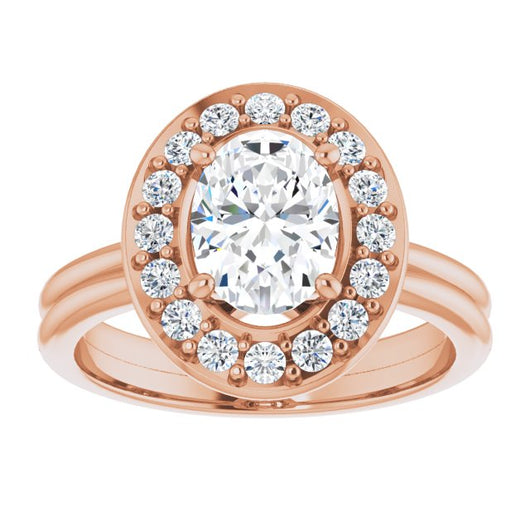 10K Rose Gold Customizable Cluster-Halo Accented Oval Cut Style with Tapered Dual Band