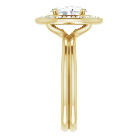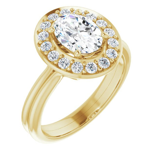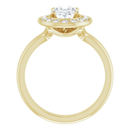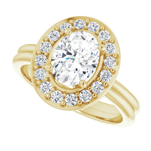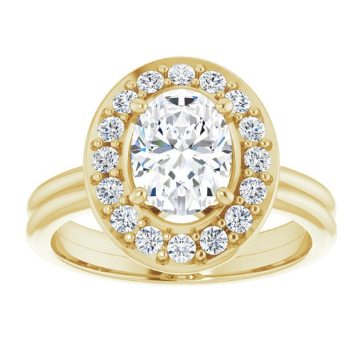 10K Yellow Gold Customizable Cluster-Halo Accented Oval Cut Style with Tapered Dual Band